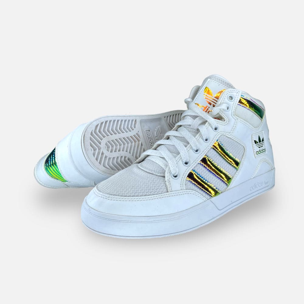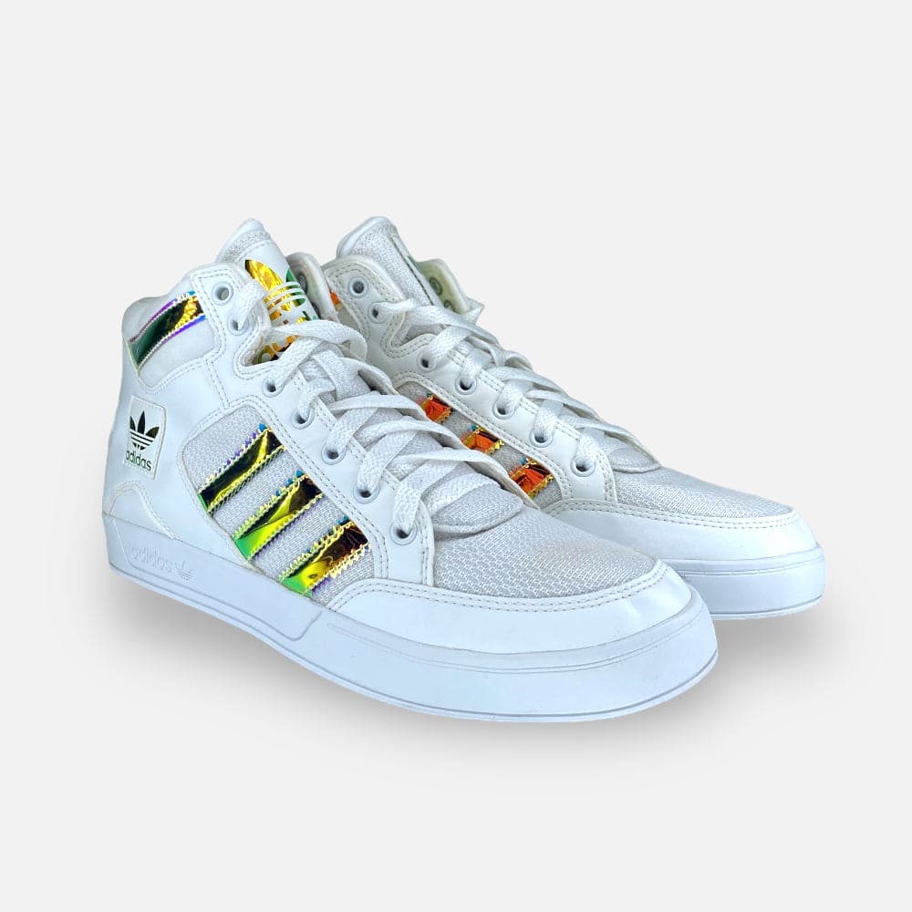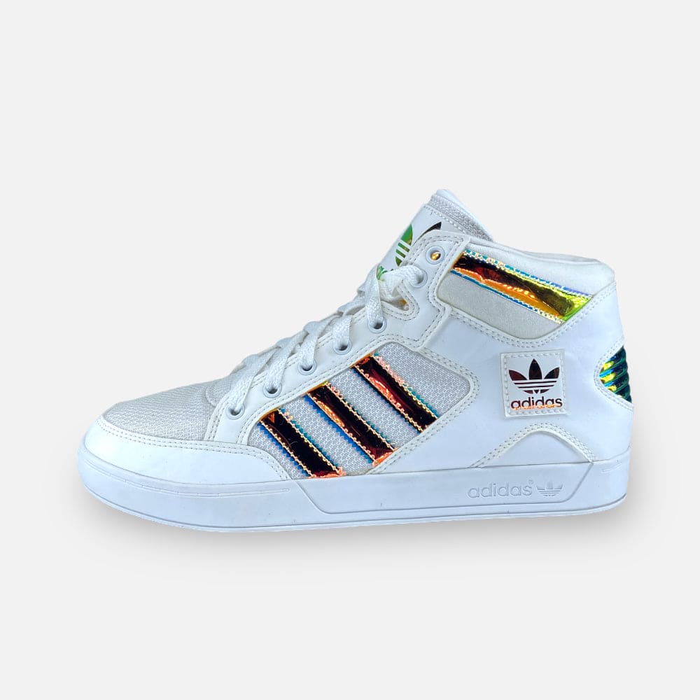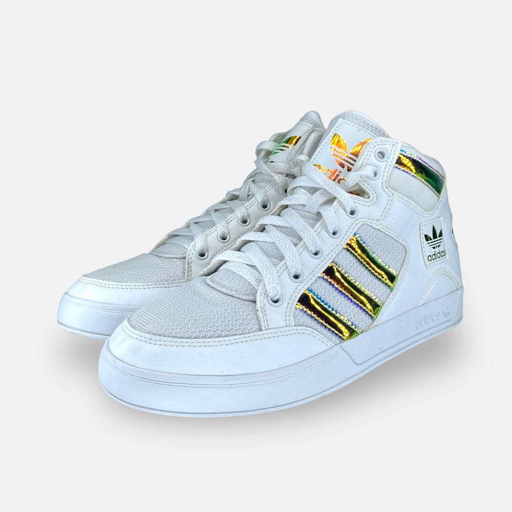 Deze tweedehands adidas HardCourt ´´Gold Iridescent´´ - Maat 40 is volledig refurbished. Hij is volledig schoongemaakt en voorzien van een nieuw WEAR binnenzooltje.