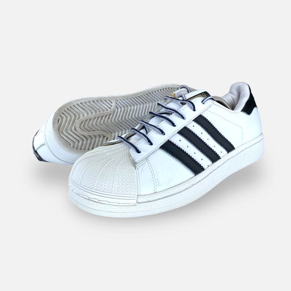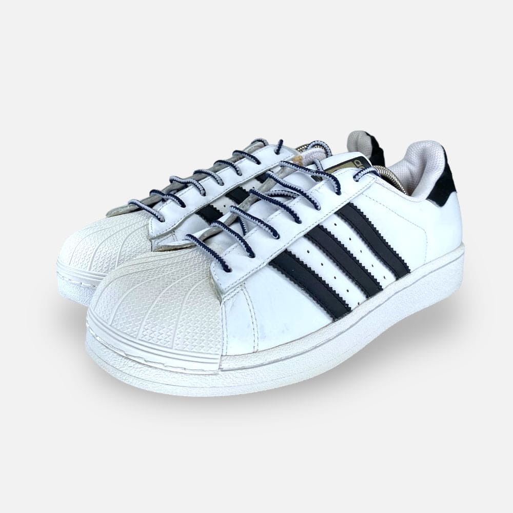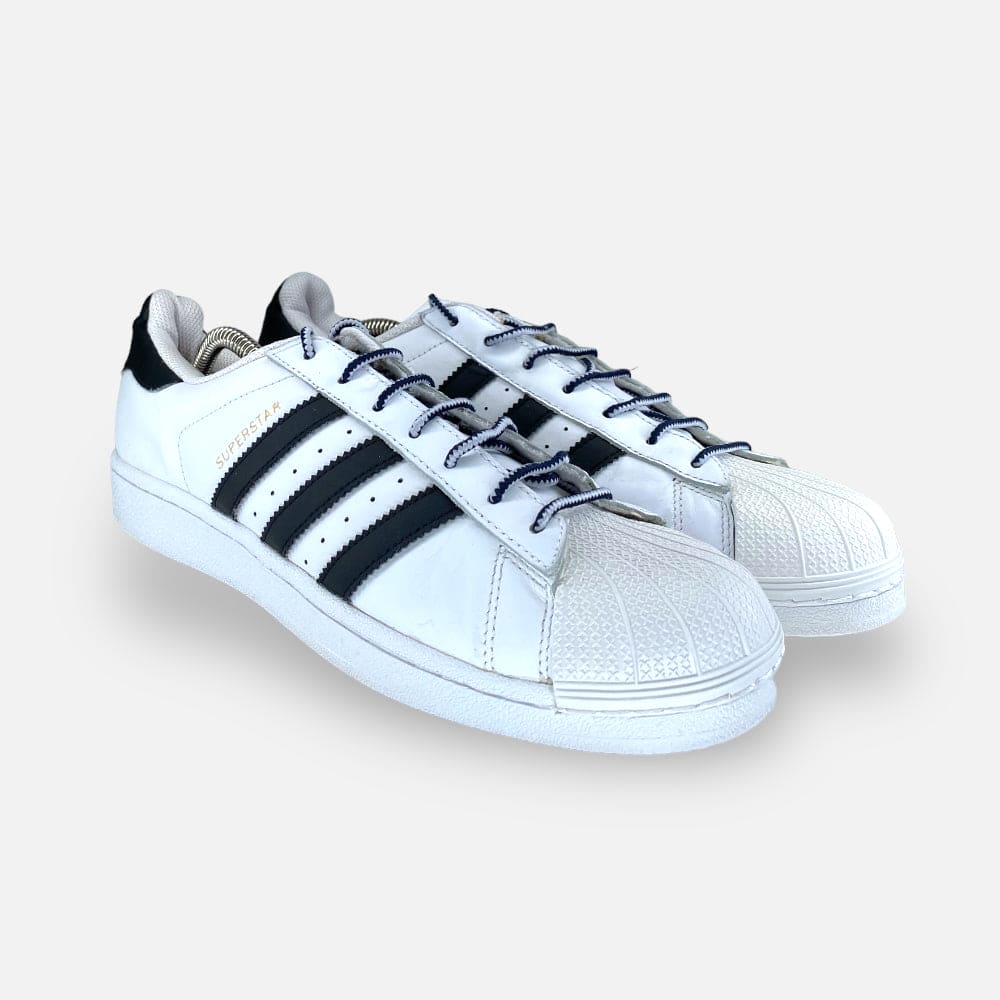 Deze tweedehands Adidas Superstar - Maat 42.5 is volledig refurbished. Hij is volledig schoongemaakt en voorzien van een nieuw WEAR binnenzooltje.