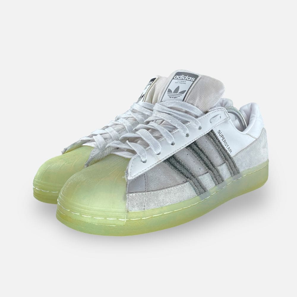 Deze tweedehands adidas Superstar - Maat 42 is volledig refurbished. Hij is volledig schoongemaakt en voorzien van een nieuw WEAR binnenzooltje.