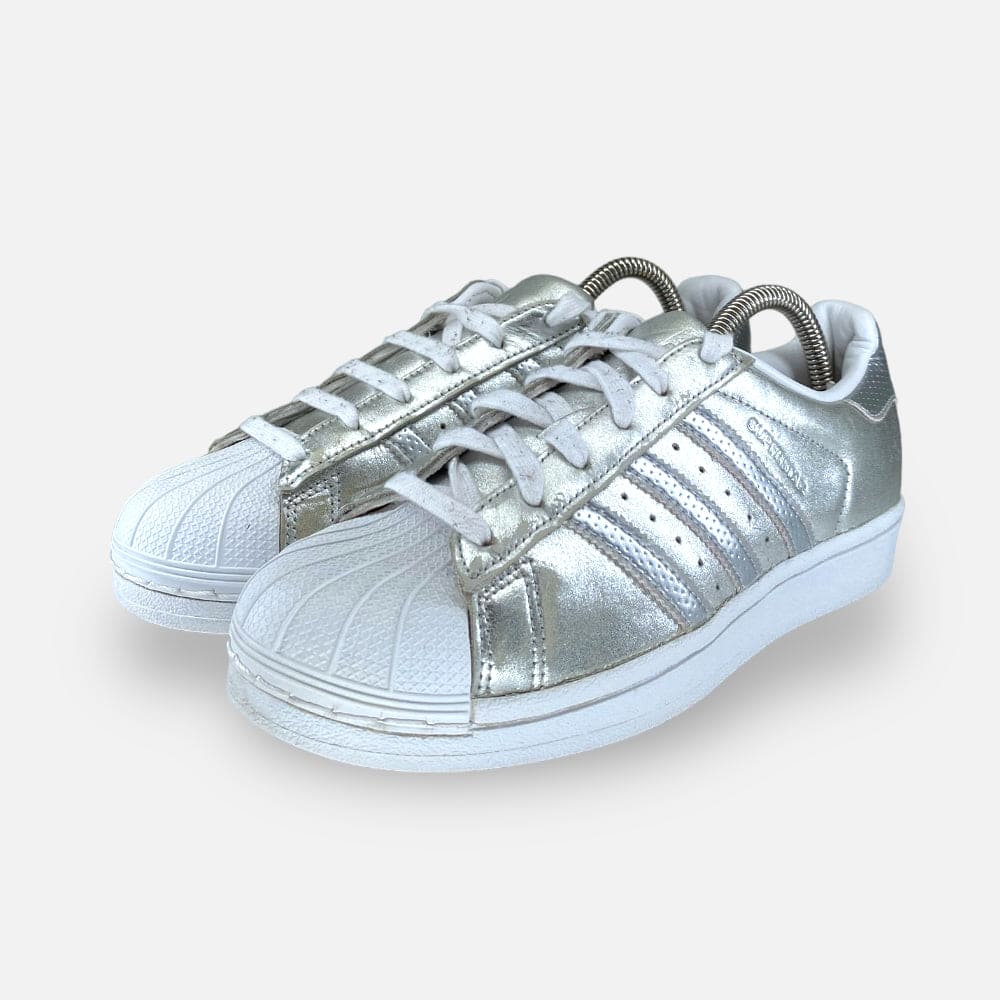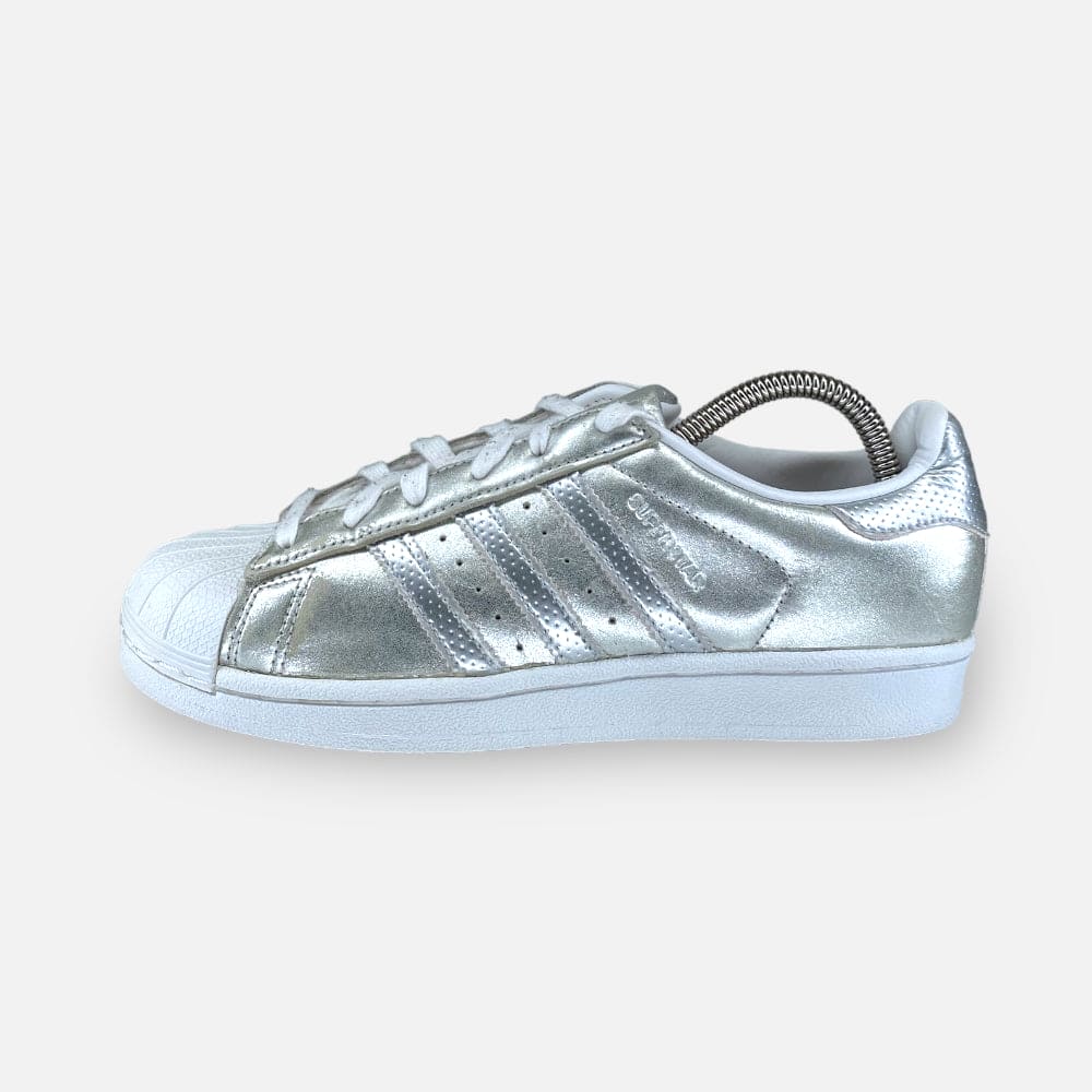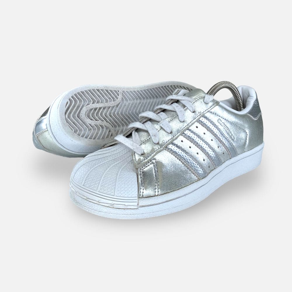 Deze tweedehands Adidas Superstar Silver - Maat 38 is volledig refurbished. Hij is volledig schoongemaakt en voorzien van een nieuw WEAR binnenzooltje.