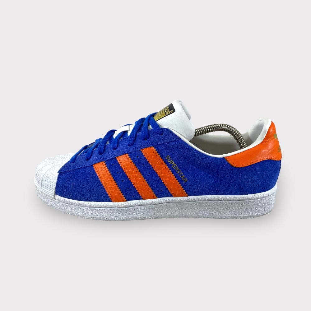 Deze pre-loved Adidas Superstar Suede - Maat 44 is volledig schoongemaakt en voorzien van een nieuw WEAR binnenzooltje.