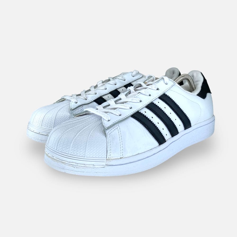Deze tweedehands adidas Superstar W Ftw White/ Core Black/ Ftw White - Maat 44 is volledig refurbished. Hij is volledig schoongemaakt en voorzien van een nieuw WEAR binnenzooltje.