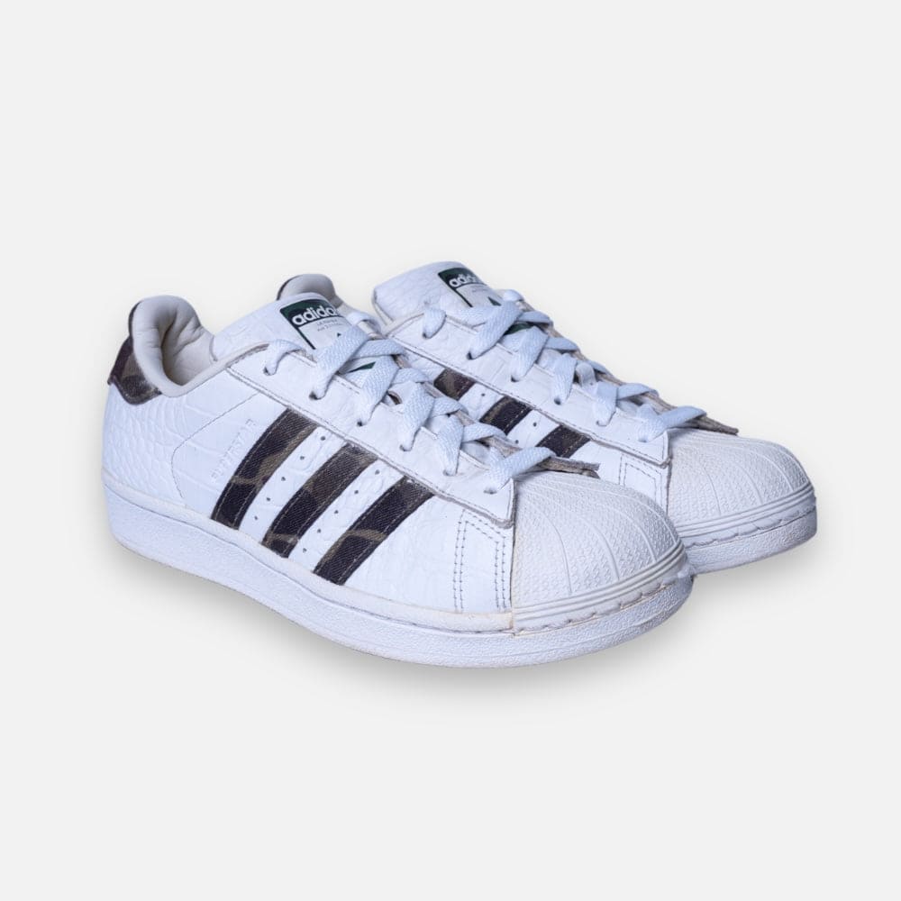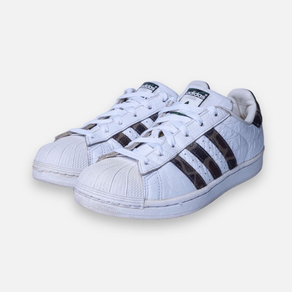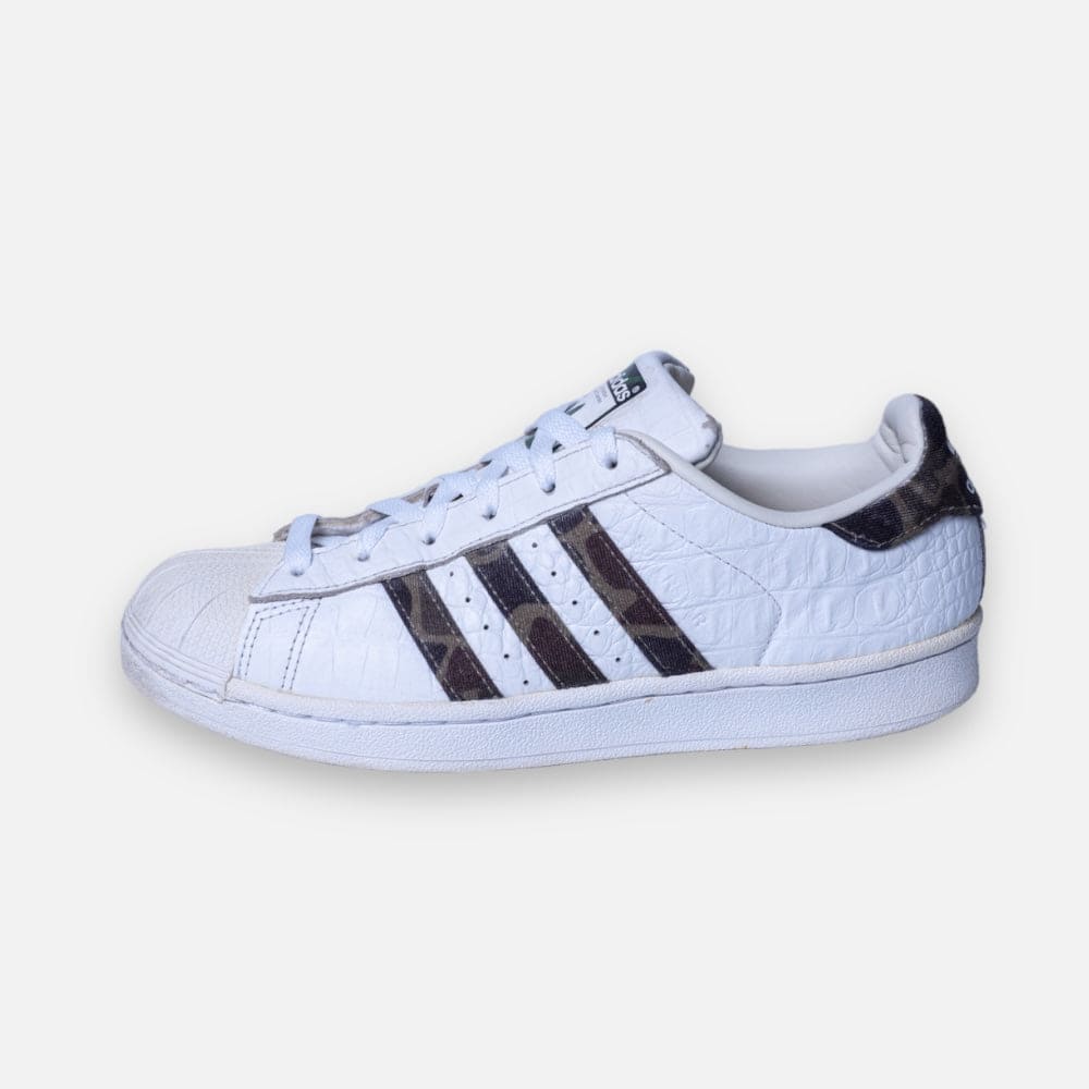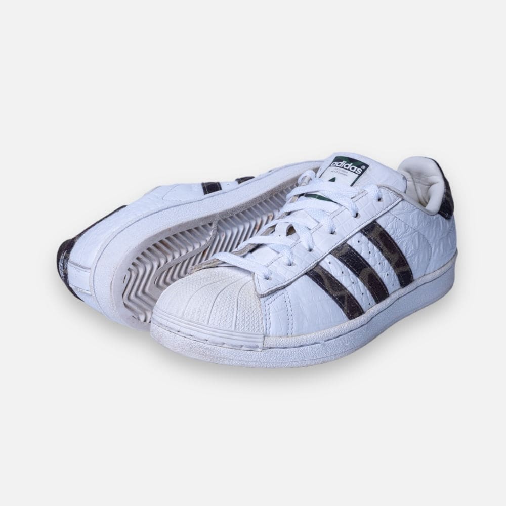 Deze tweedehands adidas Superstar White Black White - Maat 38.5 is volledig refurbished. Hij is volledig schoongemaakt en voorzien van een nieuw WEAR binnenzooltje.