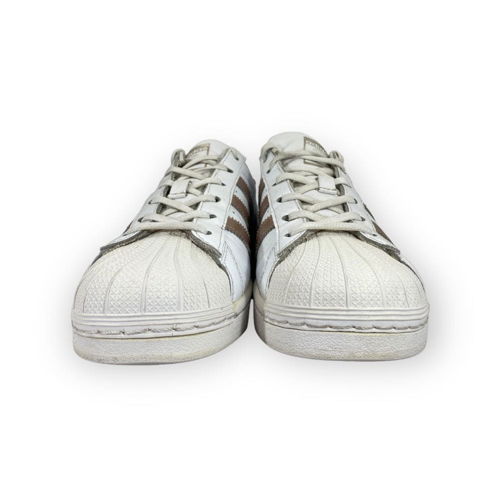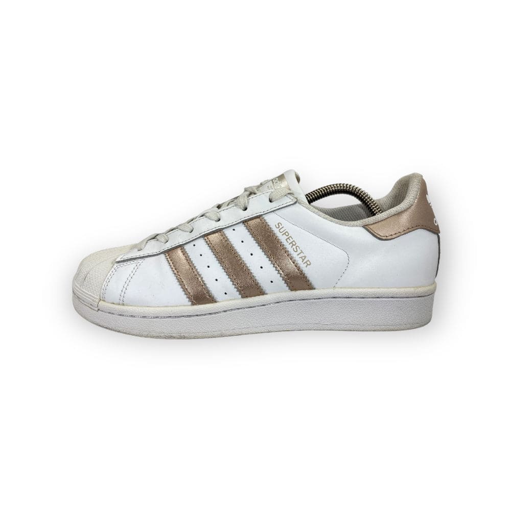 Deze adidas Superstar Wit/Koper Dames - Maat 40 is volledig refurbished. Hij is van binnen en van buiten schoongemaakt én voorzien van een nieuw WEAR binnenzooltje. Helemaal fresh en klaar voor een tweede leven!