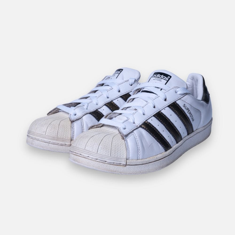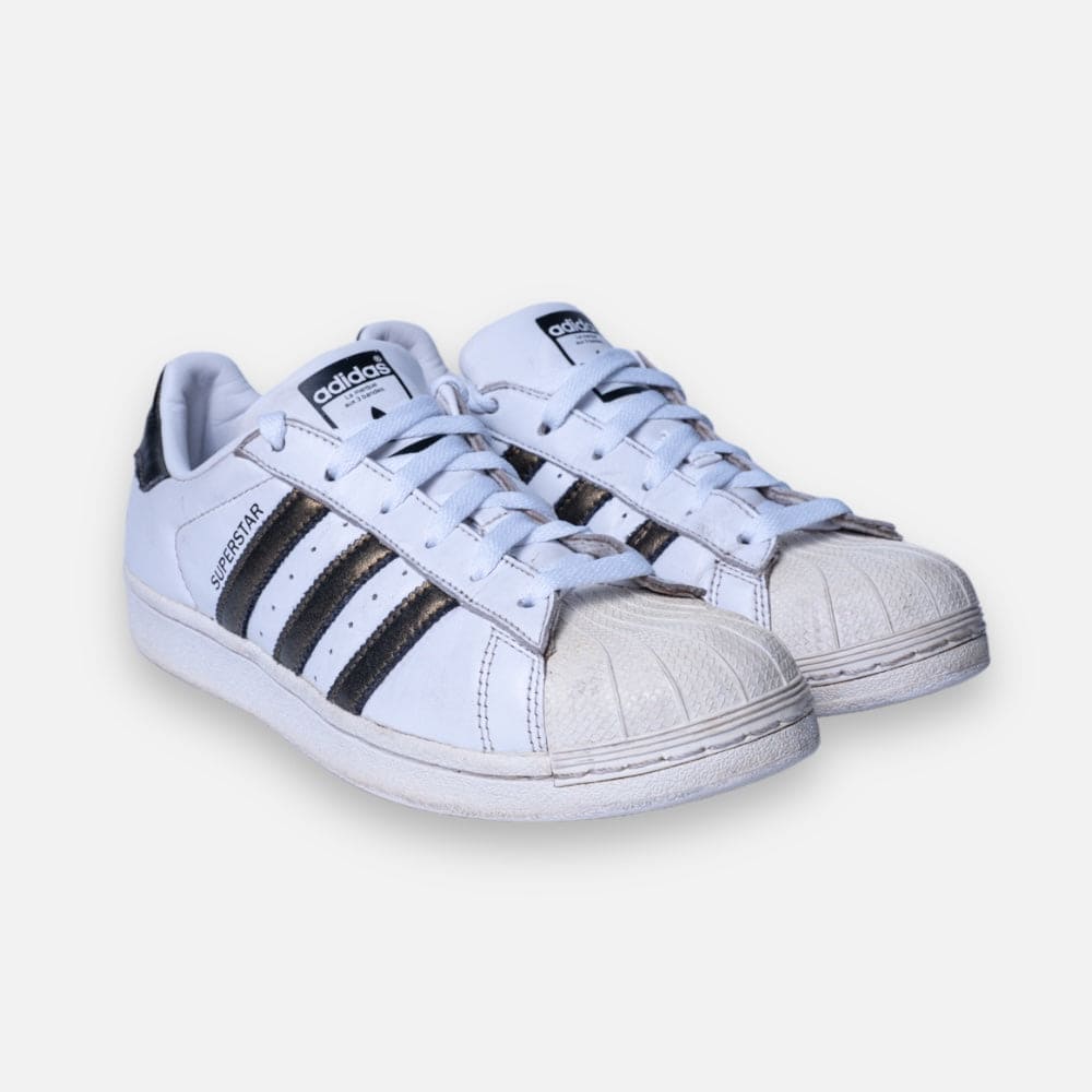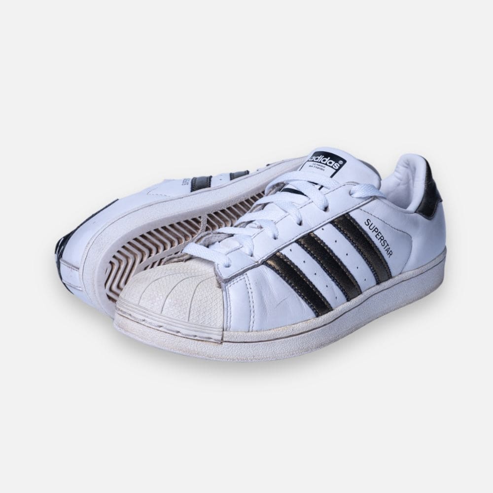 Deze tweedehands adidas Superstar womens - White Gold - Maat 40 is volledig refurbished. Hij is volledig schoongemaakt en voorzien van een nieuw WEAR binnenzooltje.