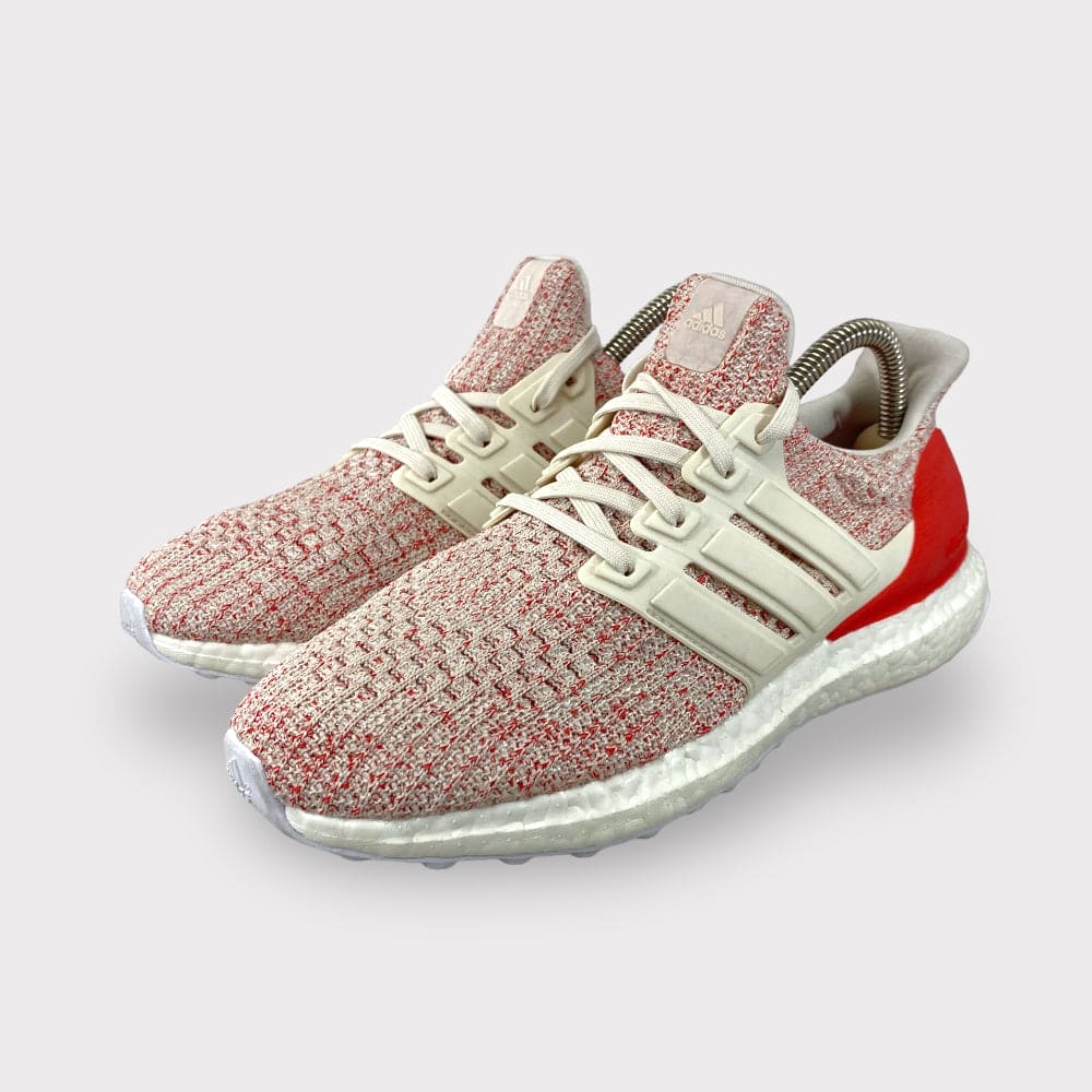 Deze adidas Ultra Boost W (Core White / Core White / Active Red) - Maat 37.5 is volledig refurbished. Hij is van binnen en van buiten schoongemaakt én voorzien van een nieuw WEAR binnenzooltje. Helemaal fresh en klaar voor een tweede leven!