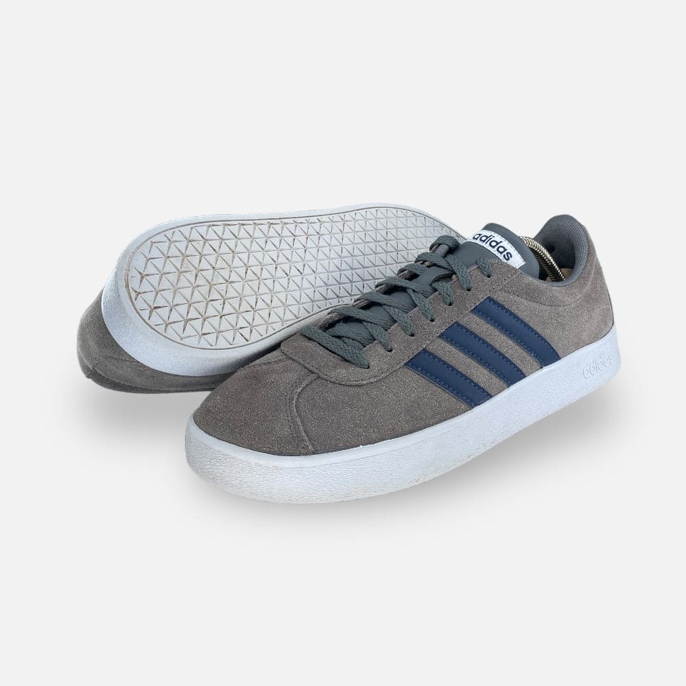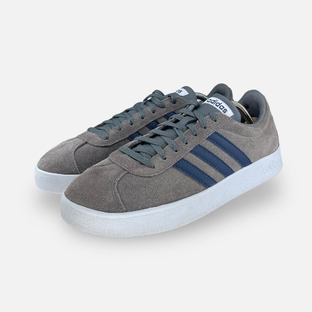 Deze tweedehands Adidas VL Court 2.0 Grey Four - Maat 42 is volledig refurbished. Hij is volledig schoongemaakt en voorzien van een nieuw WEAR binnenzooltje.