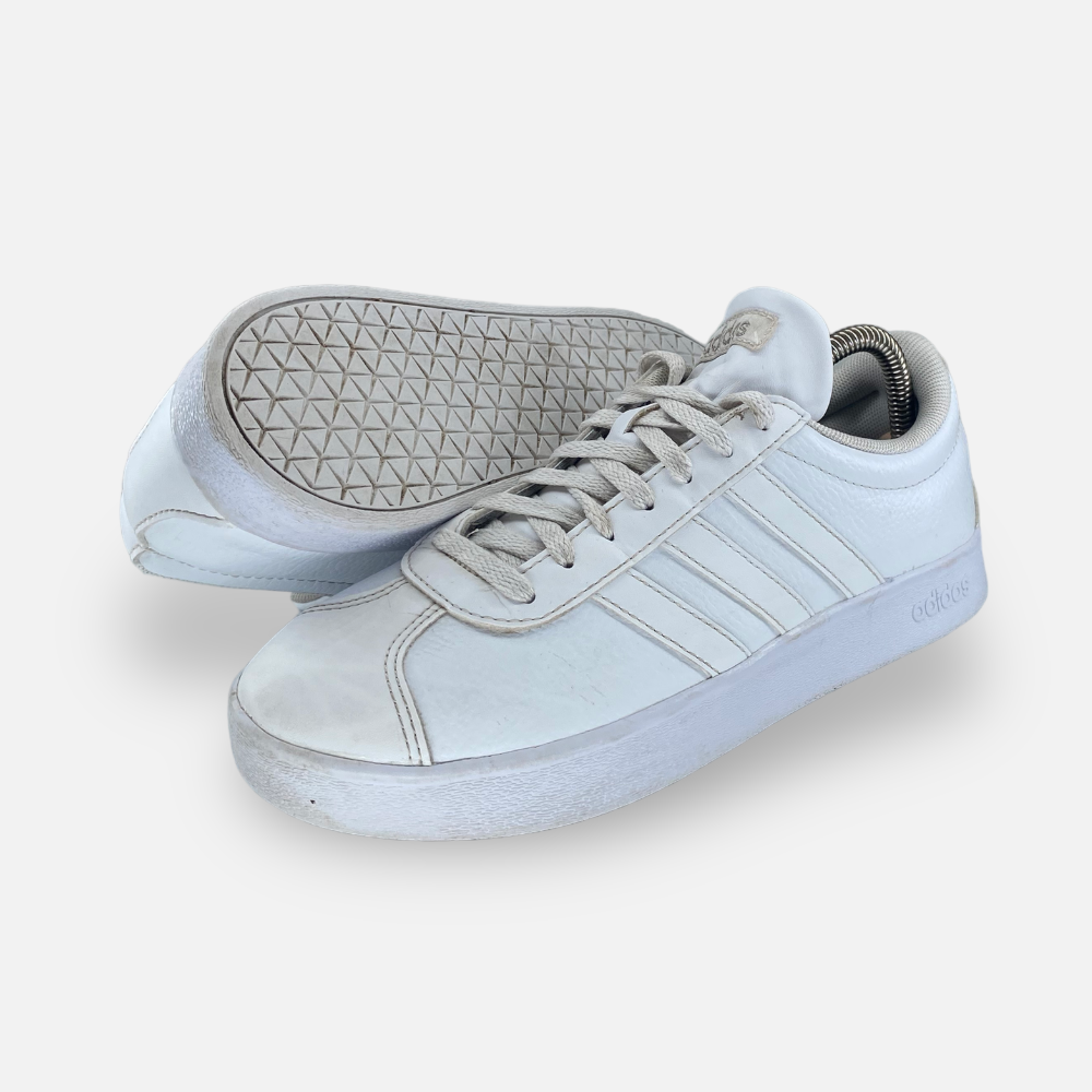 Deze tweedehands adidas VL Court 2.0 - Maat 38 is volledig refurbished. Hij is volledig schoongemaakt en voorzien van een nieuw WEAR binnenzooltje.