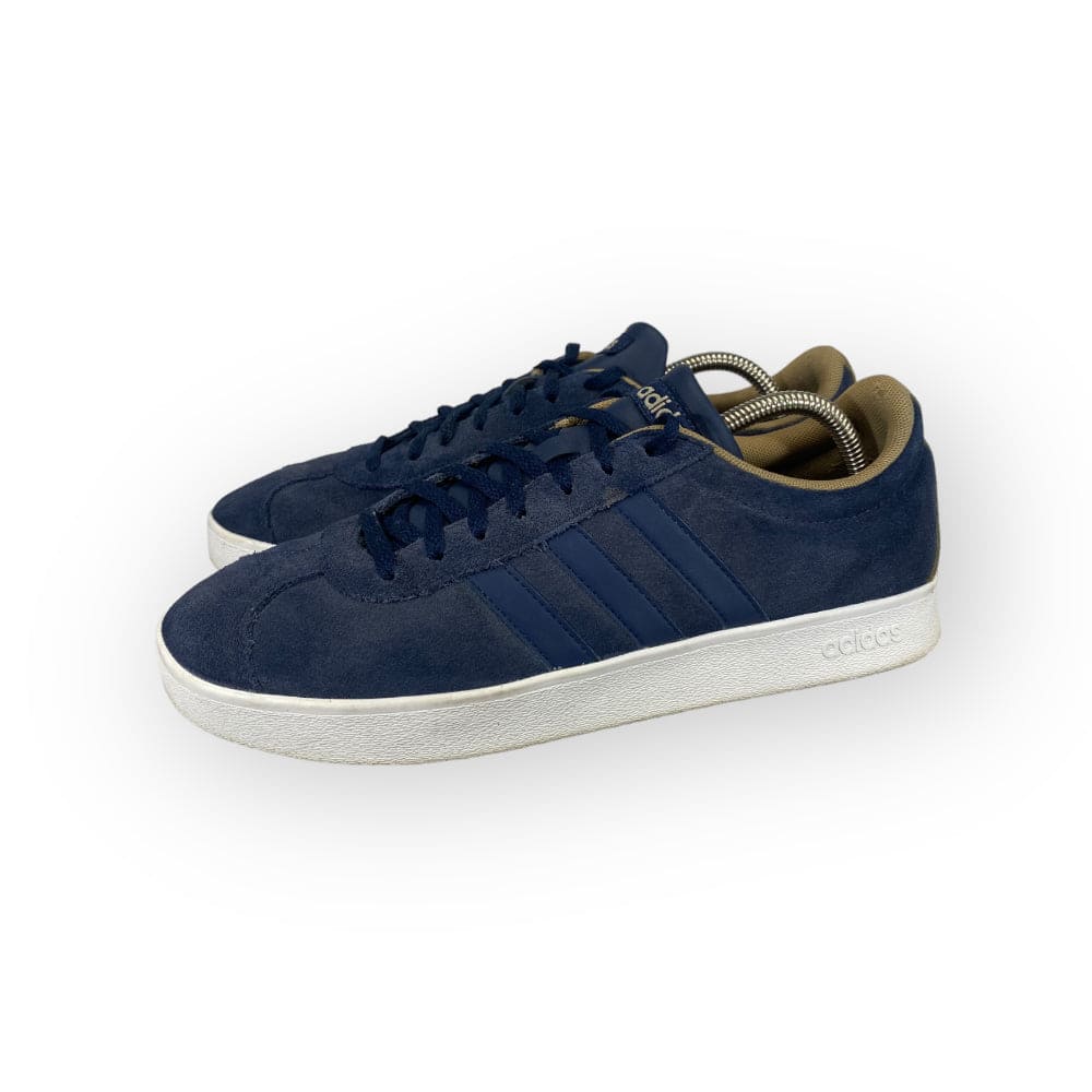 Deze pre-loved Adidas VL Court Blue - Maat 42.5 is volledig schoongemaakt en voorzien van een nieuw WEAR binnenzooltje.