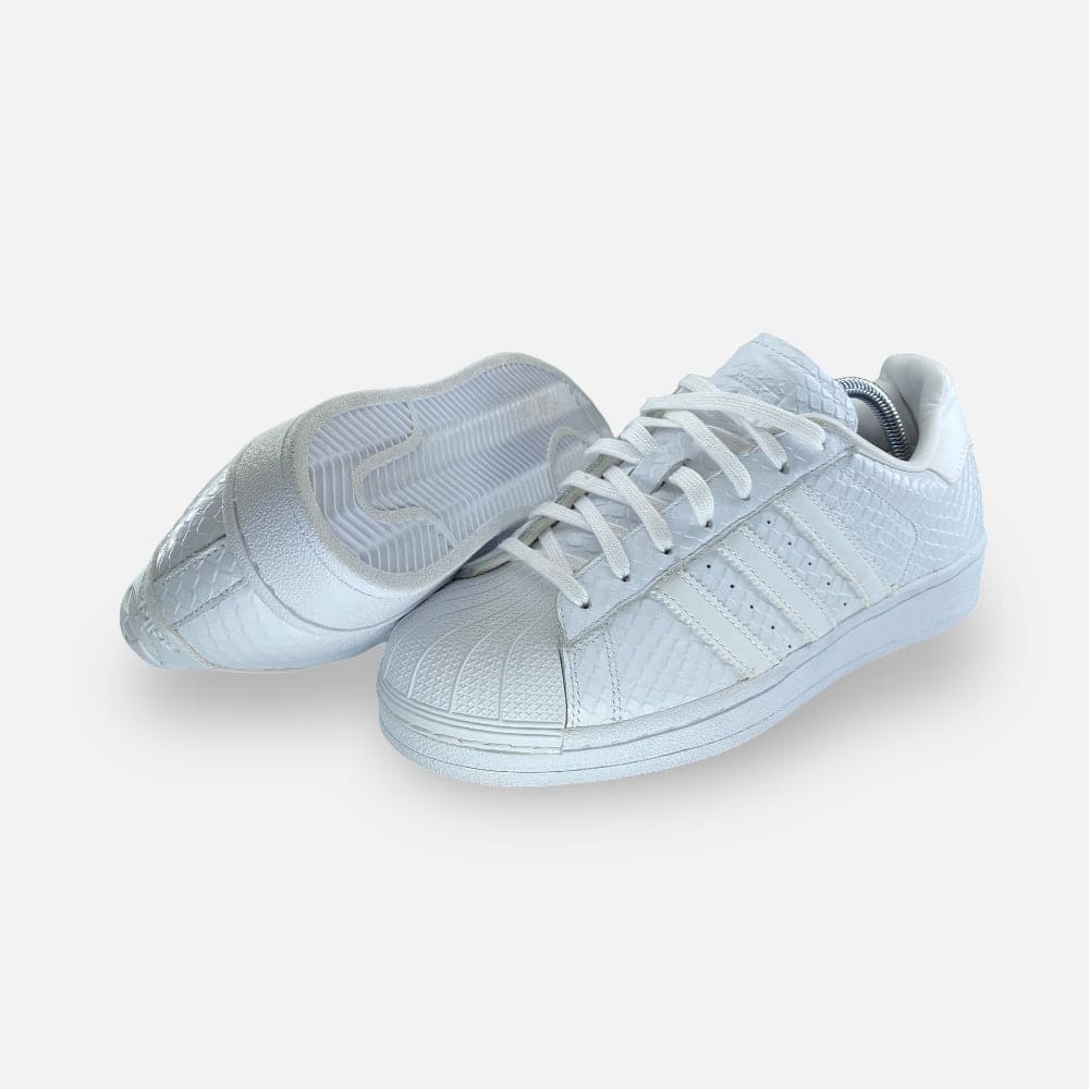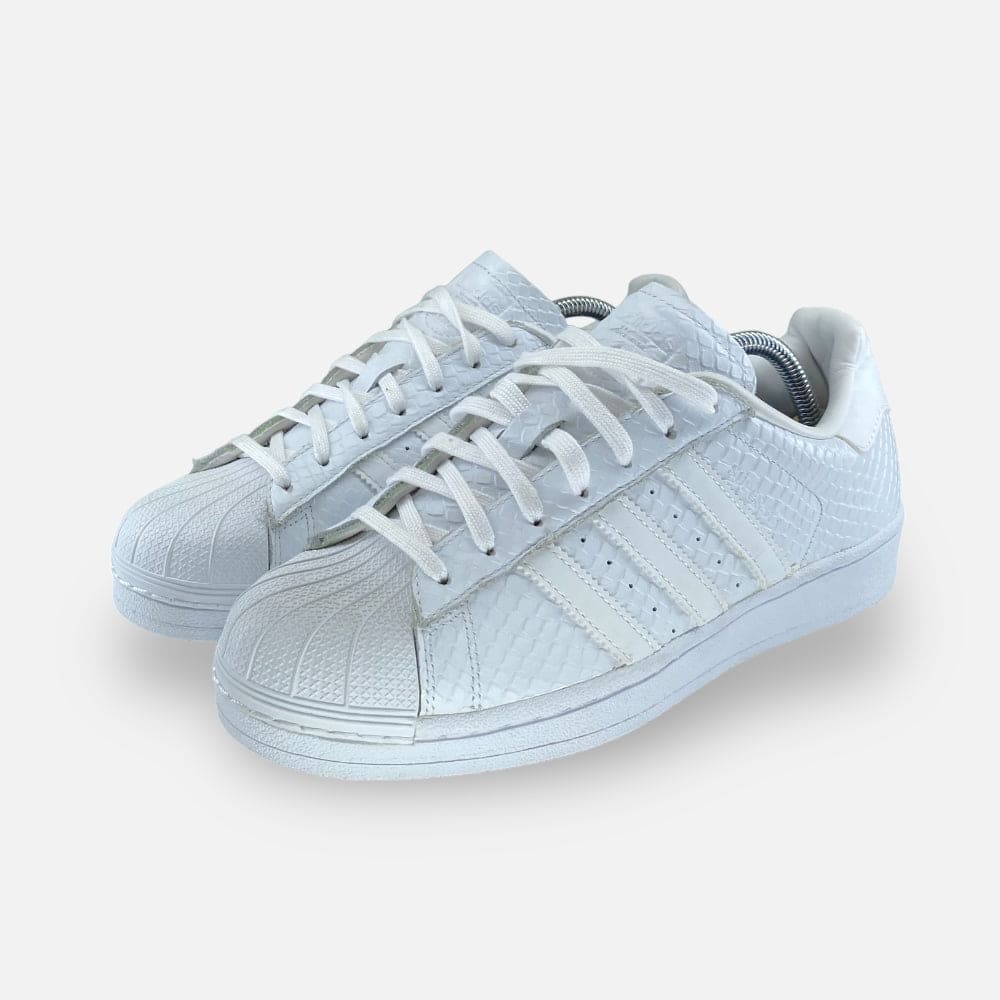 Deze tweedehands adidas Wmns Superstar - Maat 41.5 is volledig refurbished. Hij is volledig schoongemaakt en voorzien van een nieuw WEAR binnenzooltje.