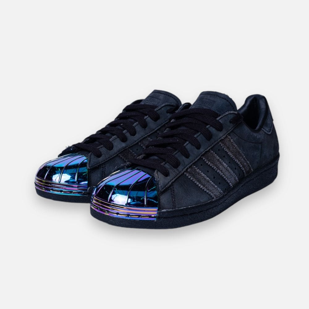 Deze tweedehands adidas Womens WMNS Superstar 80s Metal Toe 'Core Black' Core Black/Core Black/Running White - Maat 39.5 is volledig refurbished. Hij is volledig schoongemaakt en voorzien van een nieuw WEAR binnenzooltje.
