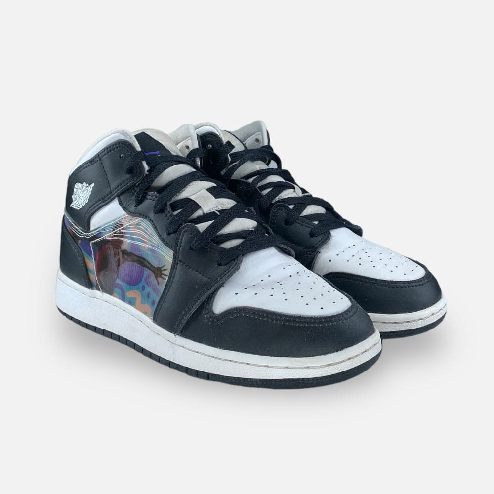 Deze tweedehands Air Jordan 1 Mid - Maat 38.5 is volledig refurbished. Hij is volledig schoongemaakt en voorzien van een nieuw WEAR binnenzooltje.