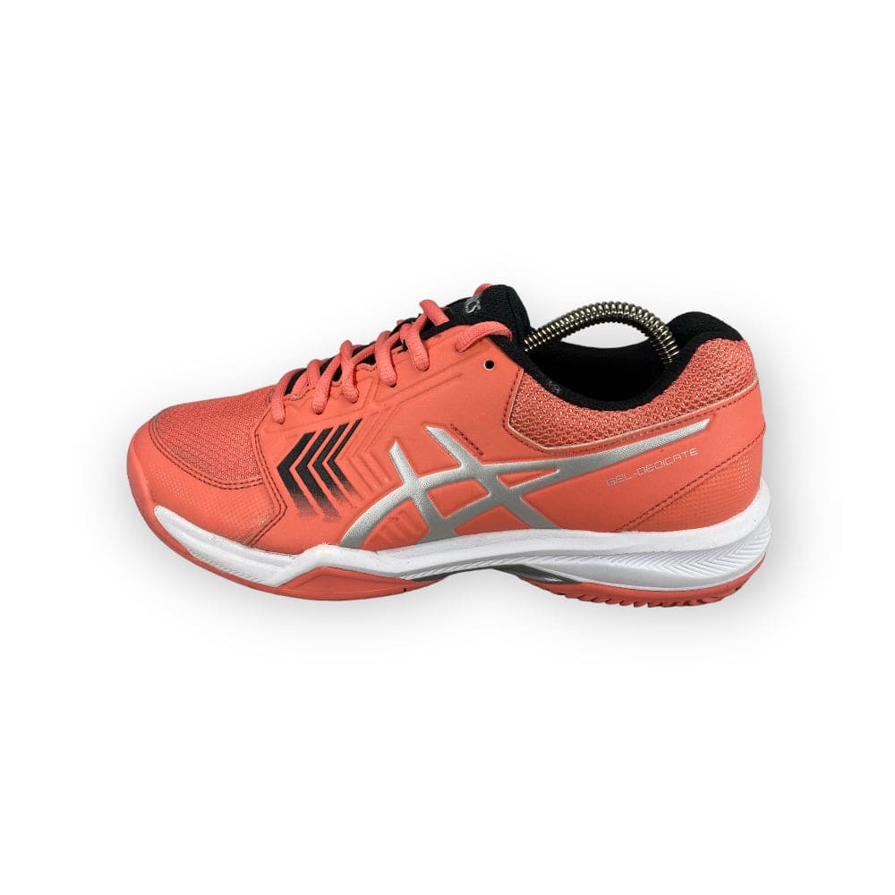 Deze pre-loved Asics Gel-Dedicate 5 Clay - Maat 39.5 is volledig schoongemaakt en voorzien van een nieuw WEAR binnenzooltje.
