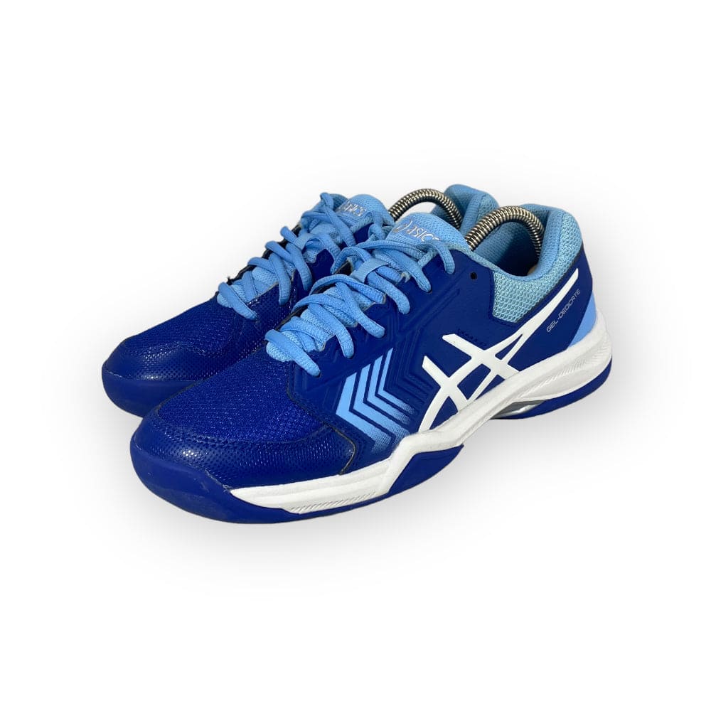 Deze pre-loved Asics Gel-dedicate - Maat 39 is volledig schoongemaakt en voorzien van een nieuw WEAR binnenzooltje.