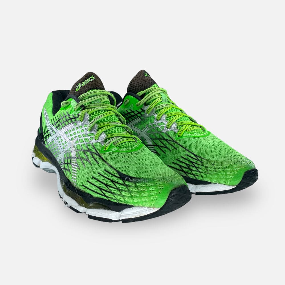 Deze tweedehands Asics Gel Nimbus 17 - Maat 48 is volledig refurbished. Hij is volledig schoongemaakt en voorzien van een nieuw WEAR binnenzooltje.