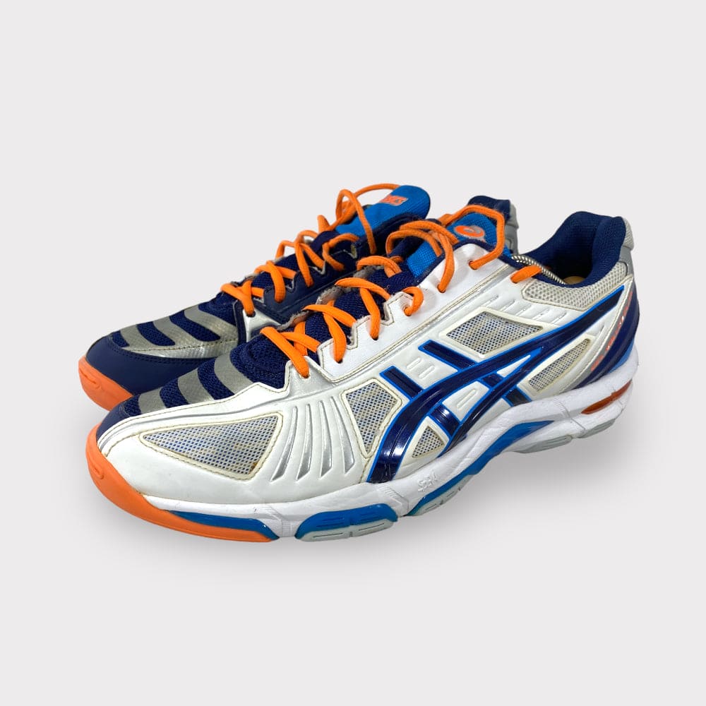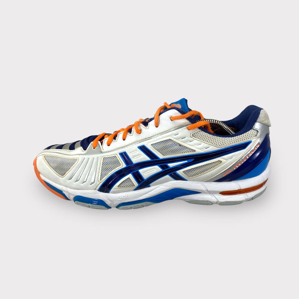 Deze tweedehands Asics Gel-Volley Elite - Maat 46.5 is volledig refurbished. Hij is volledig schoongemaakt en voorzien van een nieuw WEAR binnenzooltje.