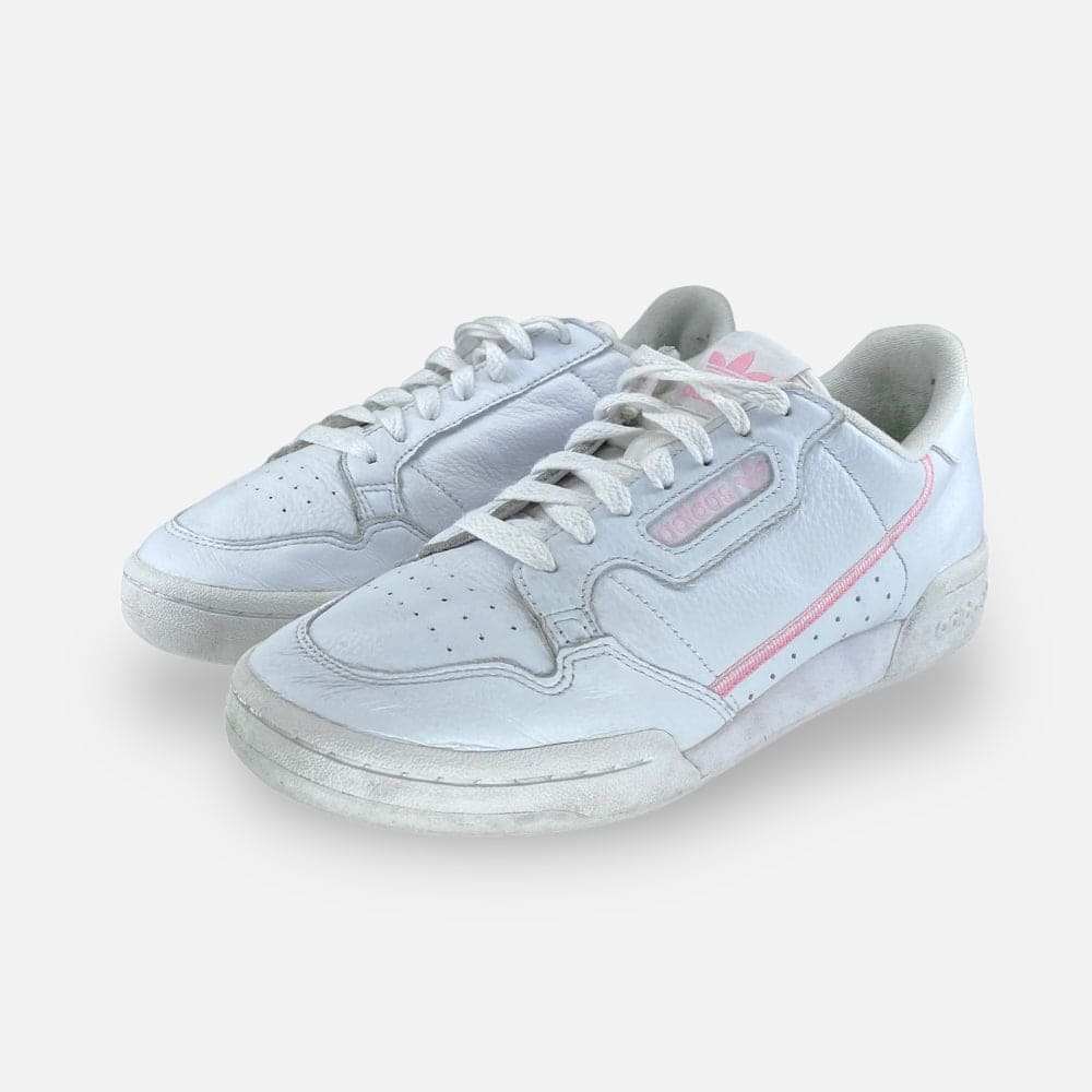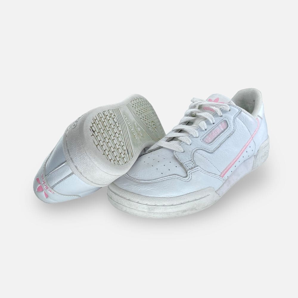 Deze adidas Continental 80 - Maat 41.5 is volledig refurbished. Hij is van binnen en van buiten schoongemaakt én voorzien van een nieuw WEAR binnenzooltje. Helemaal fresh en klaar voor een tweede leven!