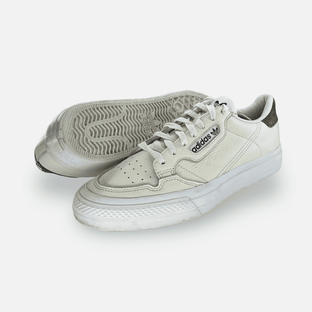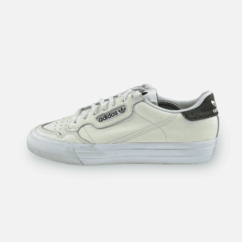 Deze tweedehands adidas Continental Vulc - Maat 43.5 is volledig refurbished. Hij is volledig schoongemaakt en voorzien van een nieuw WEAR binnenzooltje.