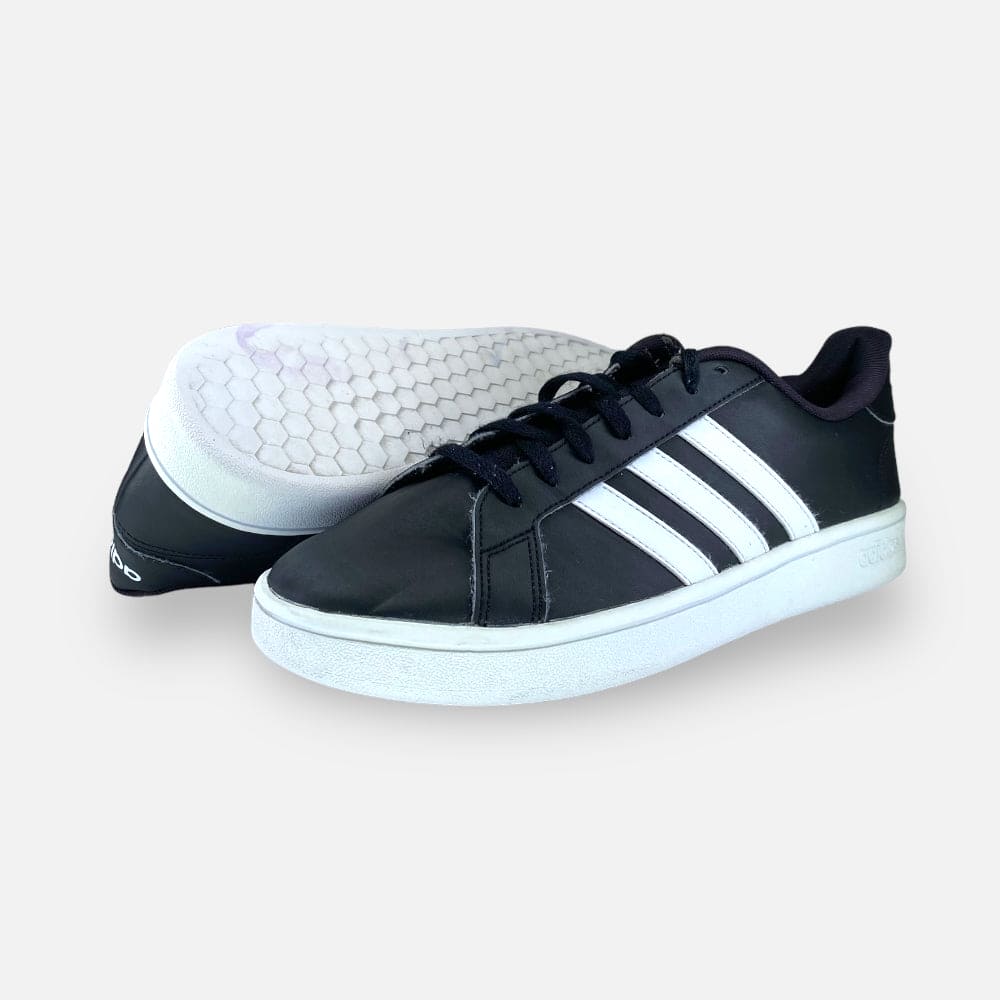 Deze adidas Grand Court Base - Maat 44 is volledig refurbished. Hij is van binnen en van buiten schoongemaakt én voorzien van een nieuw WEAR binnenzooltje. Helemaal fresh en klaar voor een tweede leven!