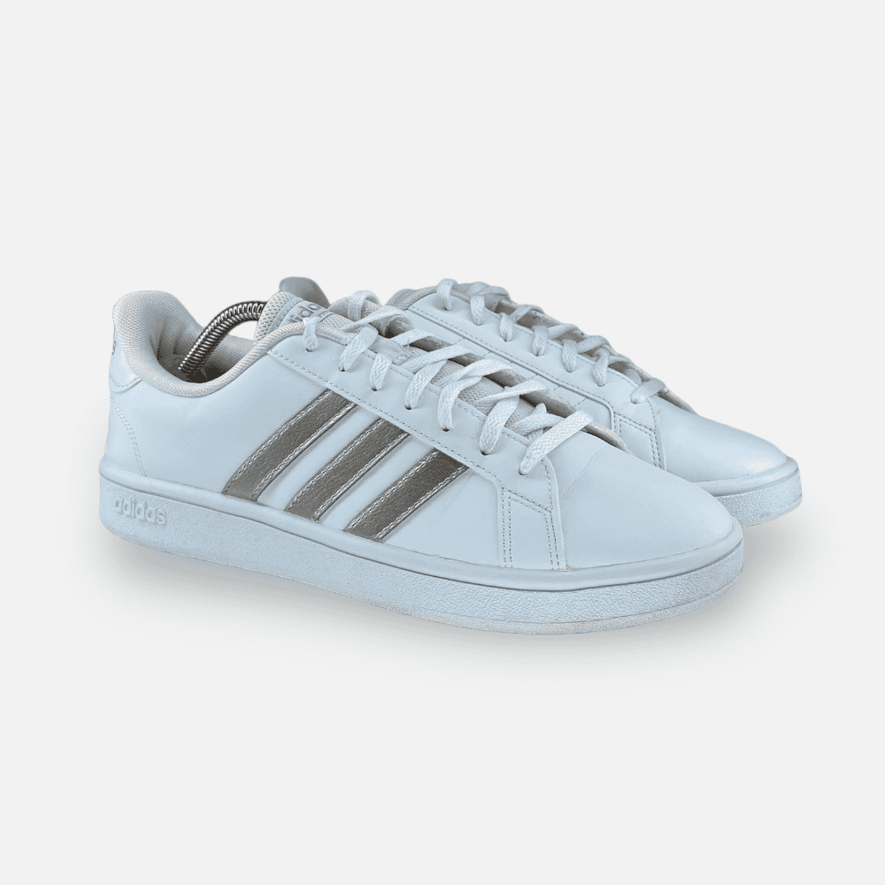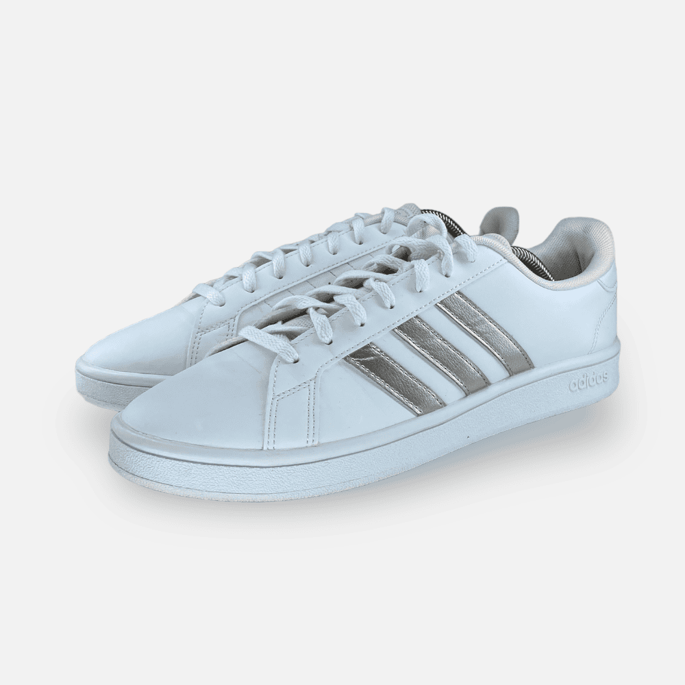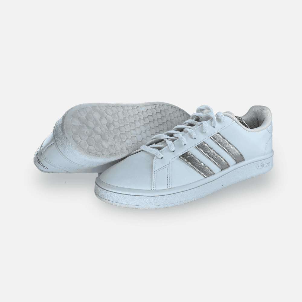 Deze tweedehands Adidas Grand Court Base - Maat 42 is volledig refurbished. Hij is volledig schoongemaakt en voorzien van een nieuw WEAR binnenzooltje.