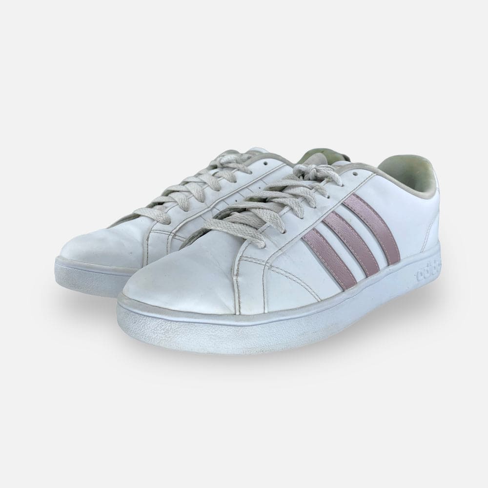Deze Adidas Grand Court - Maat 41.5 is volledig refurbished. Hij is van binnen en van buiten schoongemaakt én voorzien van een nieuw WEAR binnenzooltje. Helemaal fresh en klaar voor een tweede leven!