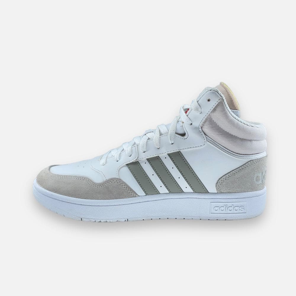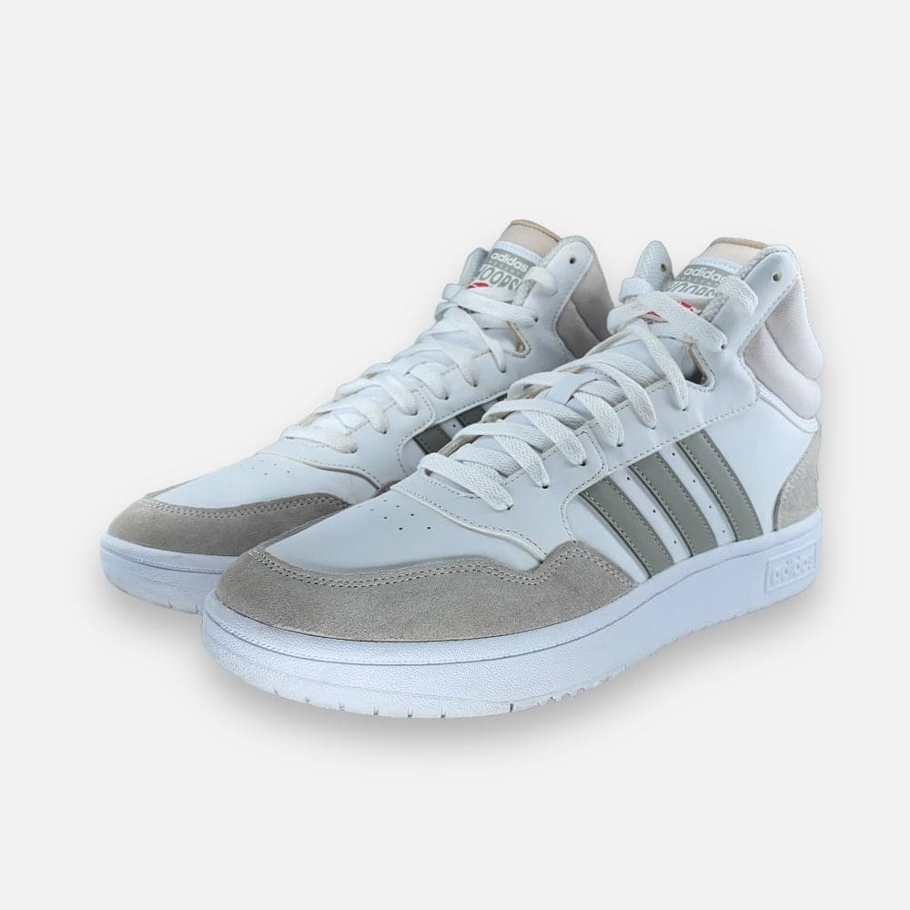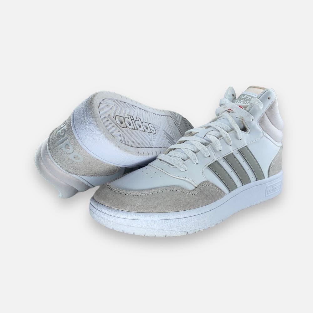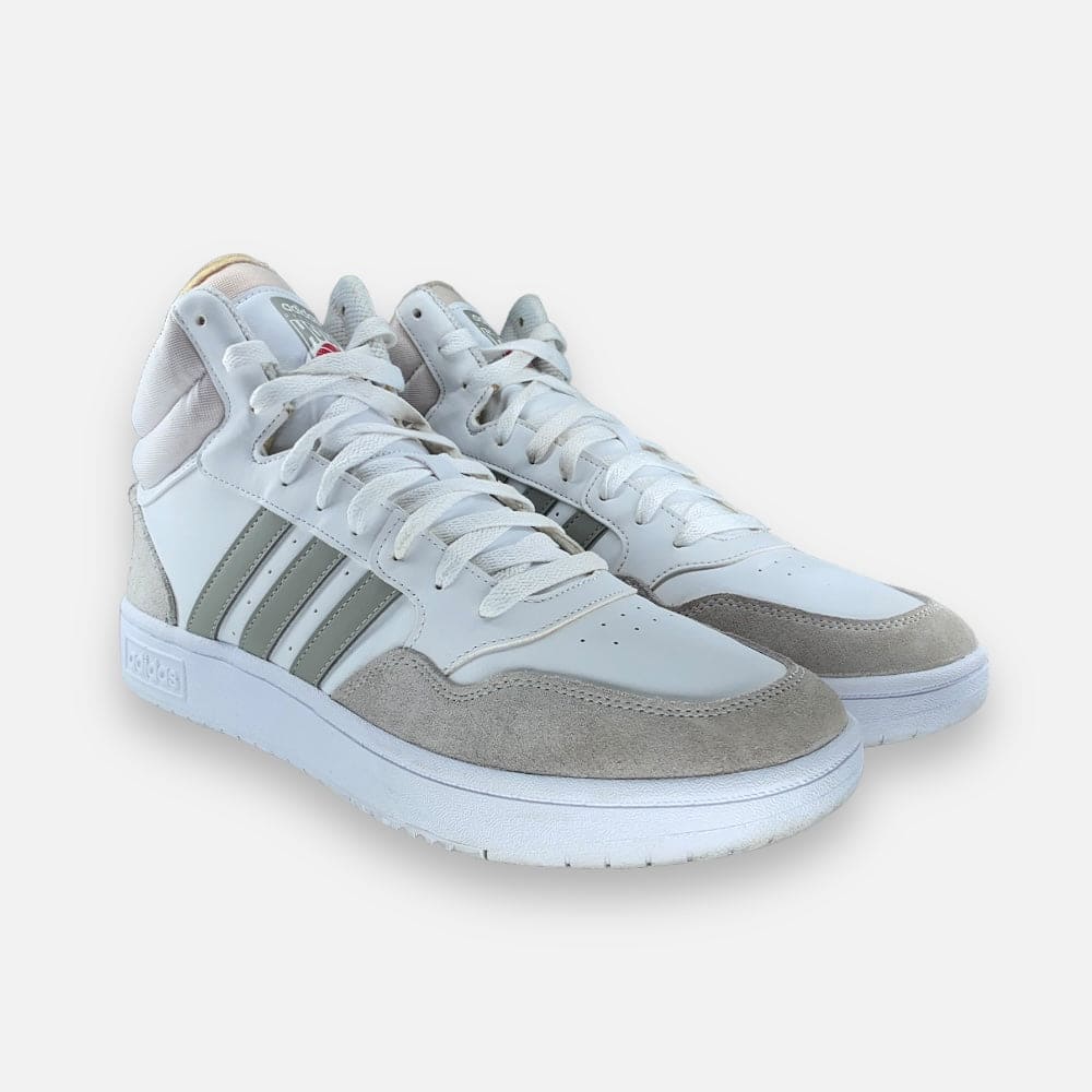 Deze tweedehands adidas Hoops 3.0 Mid 'White Metal Grey' - Maat 45.5 is volledig refurbished. Hij is volledig schoongemaakt en voorzien van een nieuw WEAR binnenzooltje.