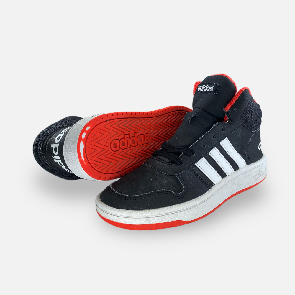 Deze tweedehands Adidas Hoops Mid 2.0 K - Maat 37.5 is volledig refurbished. Hij is volledig schoongemaakt en voorzien van een nieuw WEAR binnenzooltje.