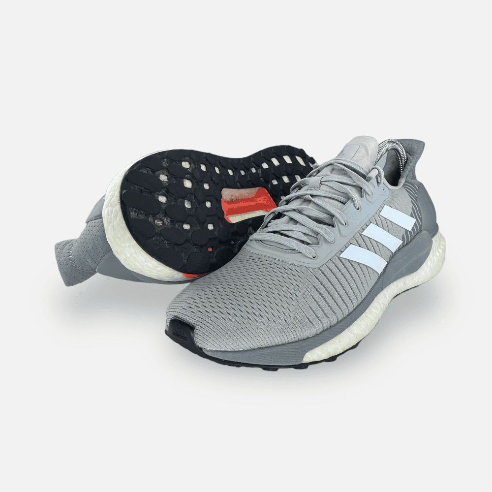 Deze tweedehands Adidas Solarglide St 19 'Gray White Orange' - Maat 42 is volledig refurbished. Hij is volledig schoongemaakt en voorzien van een nieuw WEAR binnenzooltje.