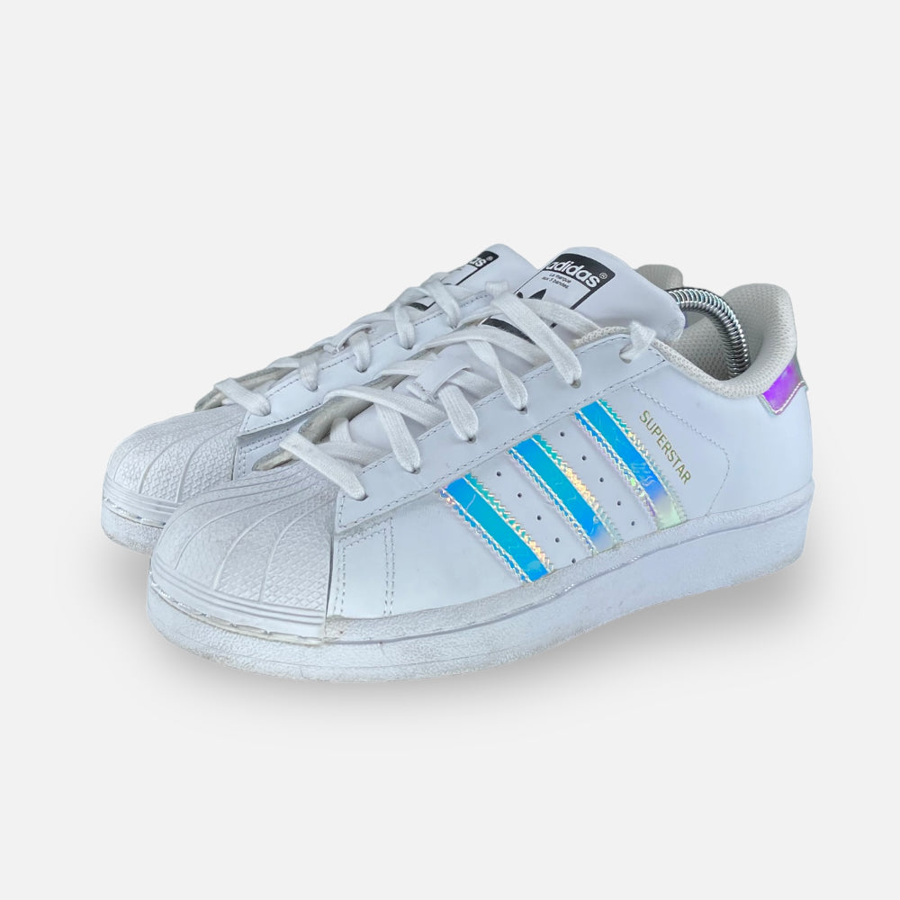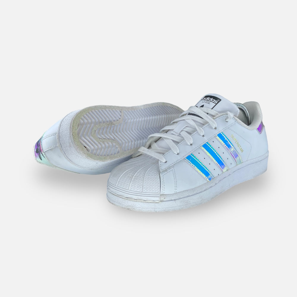 Deze adidas Superstar J W - Maat 38.5 is volledig refurbished. Hij is van binnen en van buiten schoongemaakt én voorzien van een nieuw WEAR binnenzooltje. Helemaal fresh en klaar voor een tweede leven!