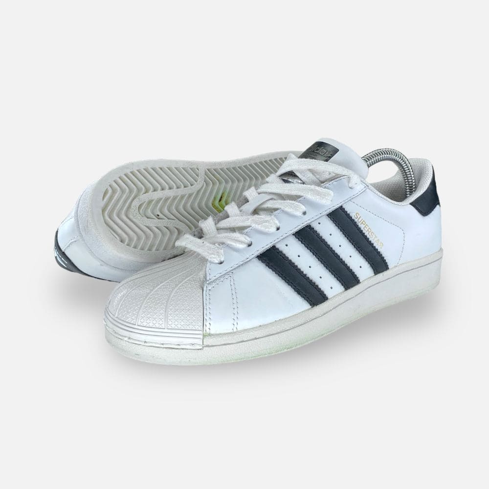Deze adidas Superstar Junior Sneakers - Maat 36 is volledig refurbished. Hij is van binnen en van buiten schoongemaakt én voorzien van een nieuw WEAR binnenzooltje. Helemaal fresh en klaar voor een tweede leven!