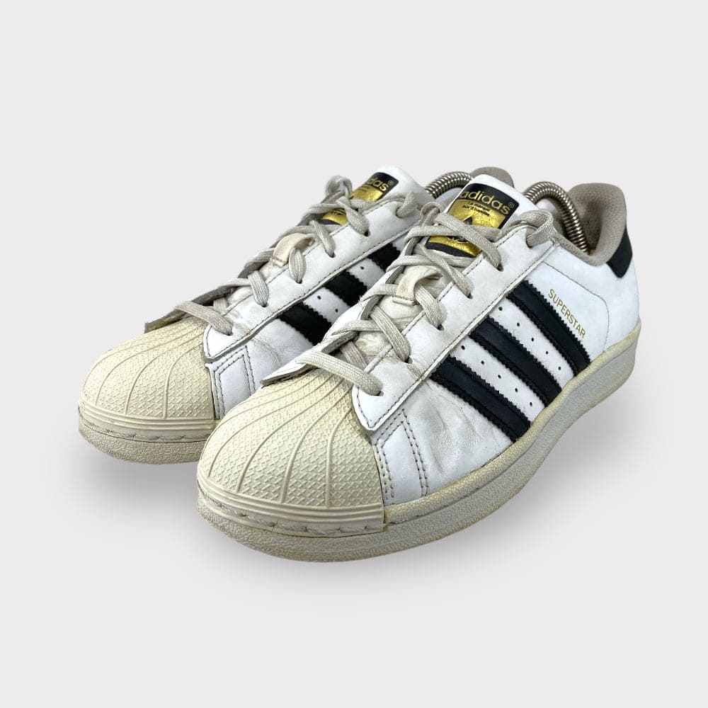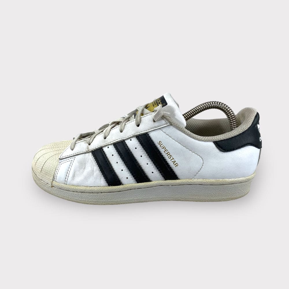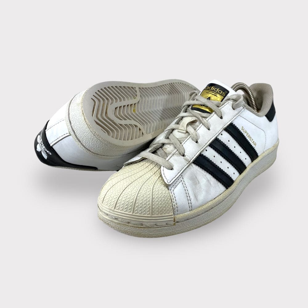 Deze adidas Superstar Junior Sneakers - Maat 38 is volledig refurbished. Hij is van binnen en van buiten schoongemaakt én voorzien van een nieuw WEAR binnenzooltje. Helemaal fresh en klaar voor een tweede leven!