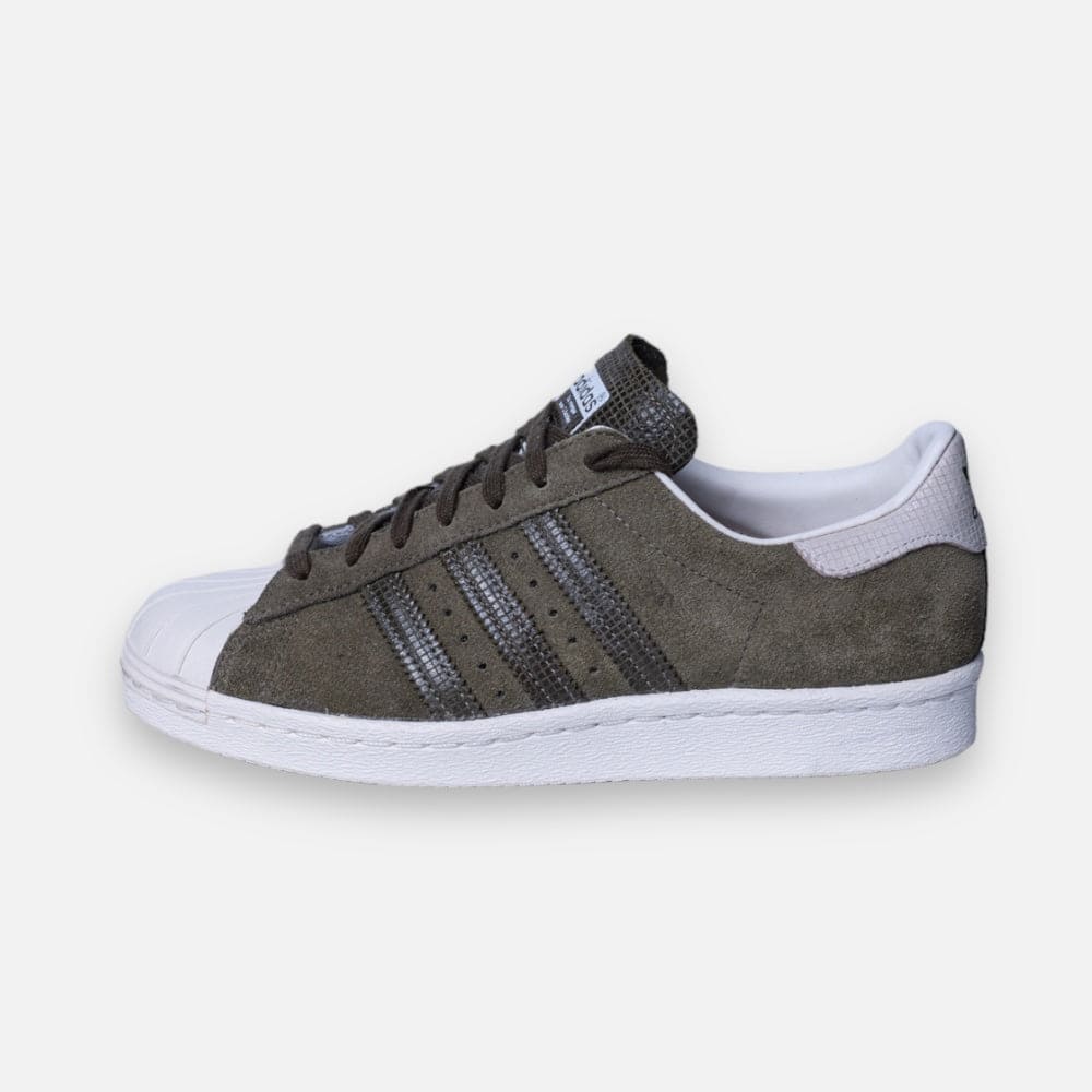 Deze tweedehands Adidas Superstar Khaki - Maat 38 is volledig refurbished. Hij is volledig schoongemaakt en voorzien van een nieuw WEAR binnenzooltje.