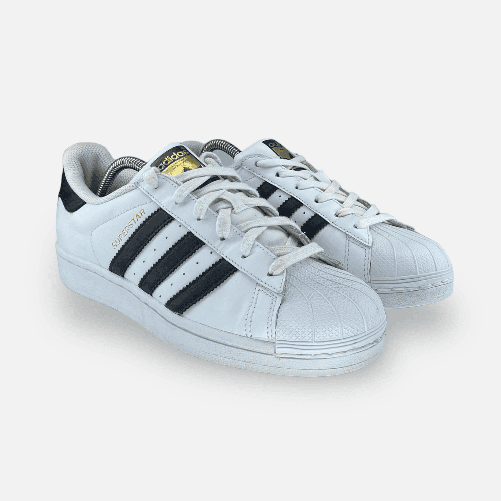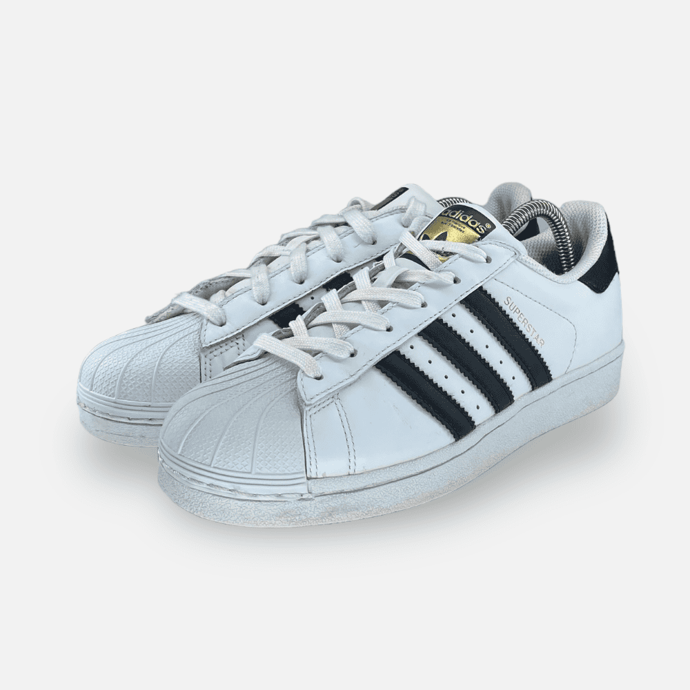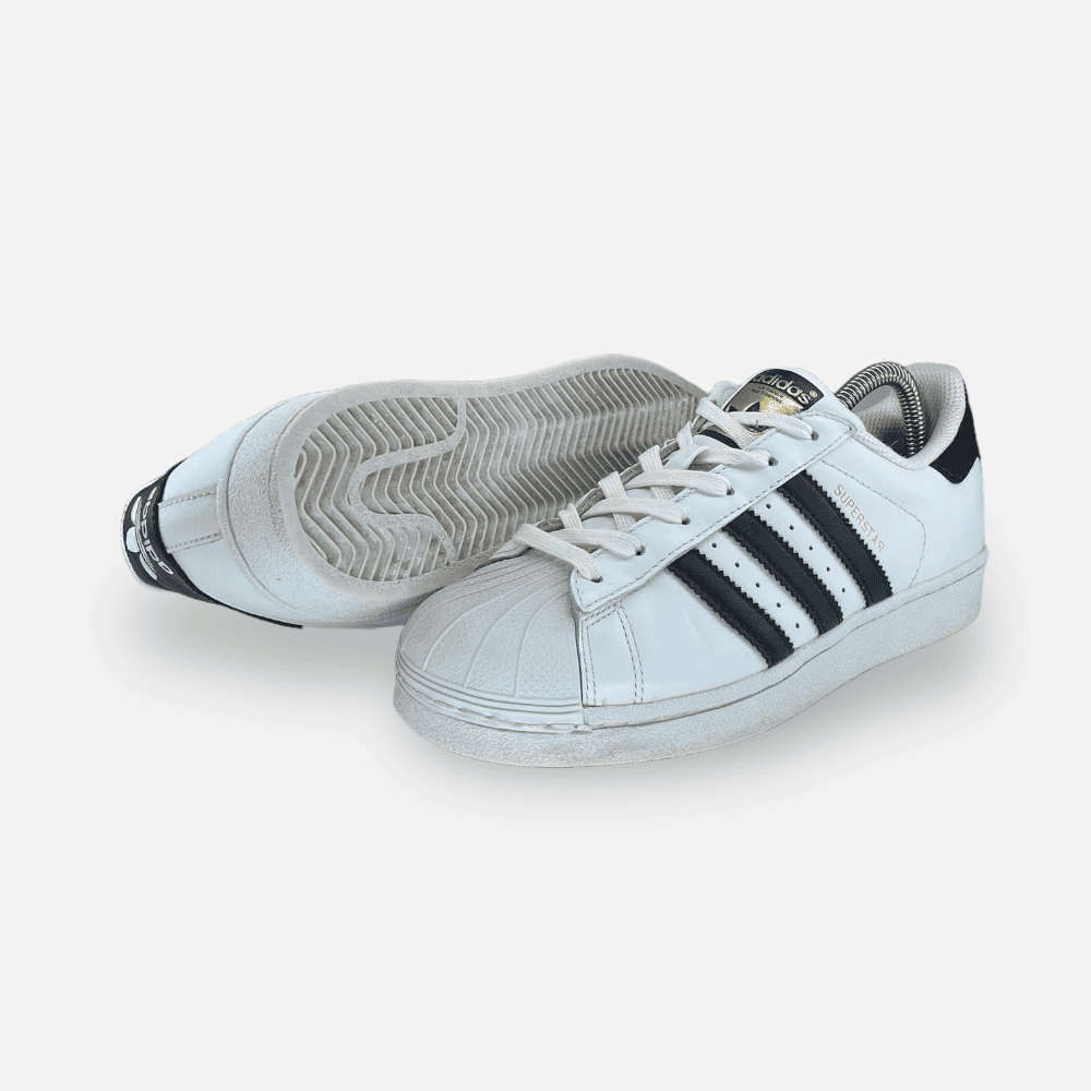 Deze tweedehands Adidas Superstar - Maat 37.5 is volledig refurbished. Hij is volledig schoongemaakt en voorzien van een nieuw WEAR binnenzooltje.