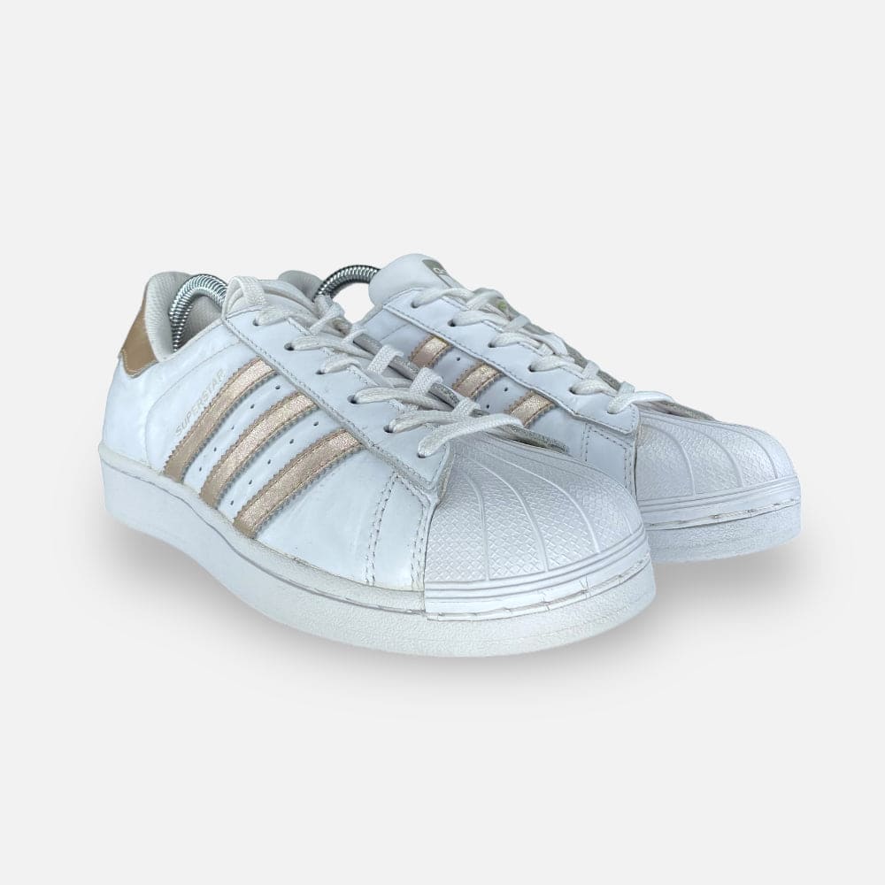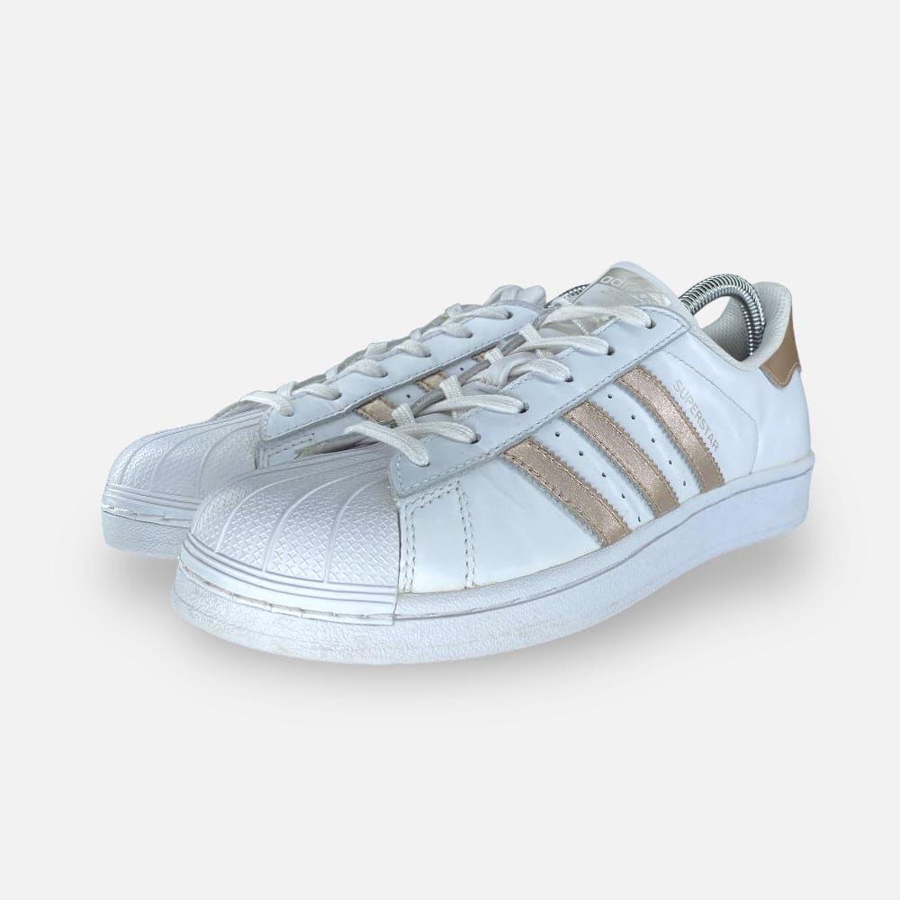 Deze Adidas Superstar - Maat 38.5 is volledig refurbished. Hij is van binnen en van buiten schoongemaakt én voorzien van een nieuw WEAR binnenzooltje. Helemaal fresh en klaar voor een tweede leven!