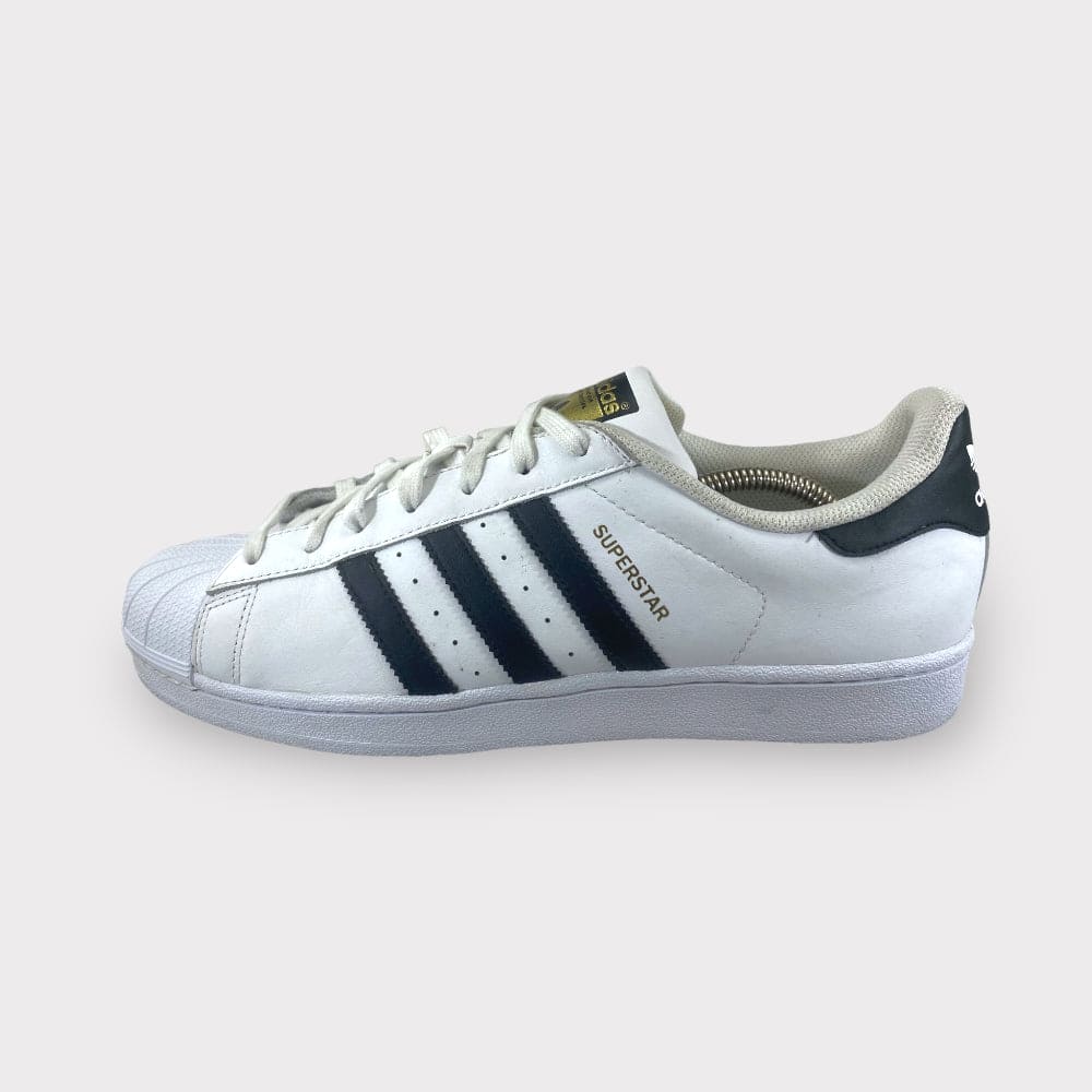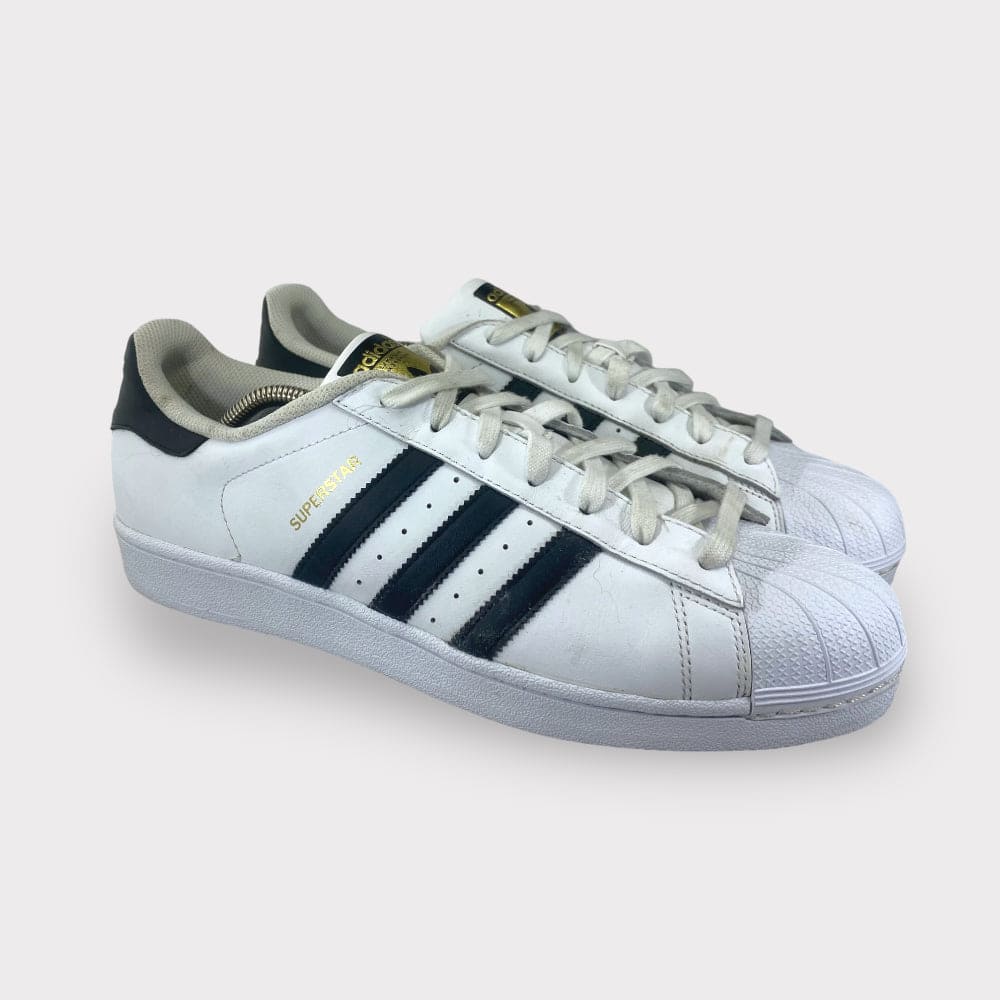 Deze pre-loved Adidas Superstar - Maat 46 is volledig schoongemaakt en voorzien van een nieuw WEAR binnenzooltje.