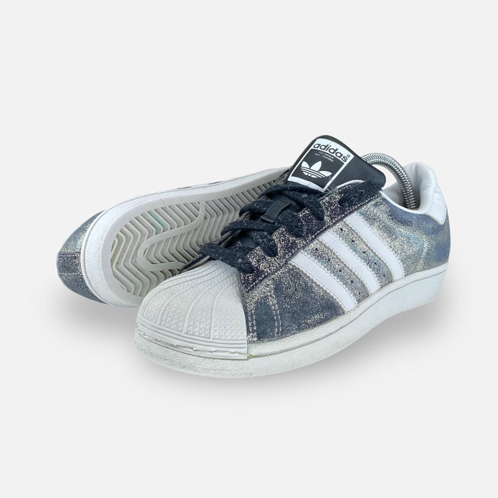 Deze tweedehands Adidas Superstar - Maat 38 is volledig refurbished. Hij is volledig schoongemaakt en voorzien van een nieuw WEAR binnenzooltje.