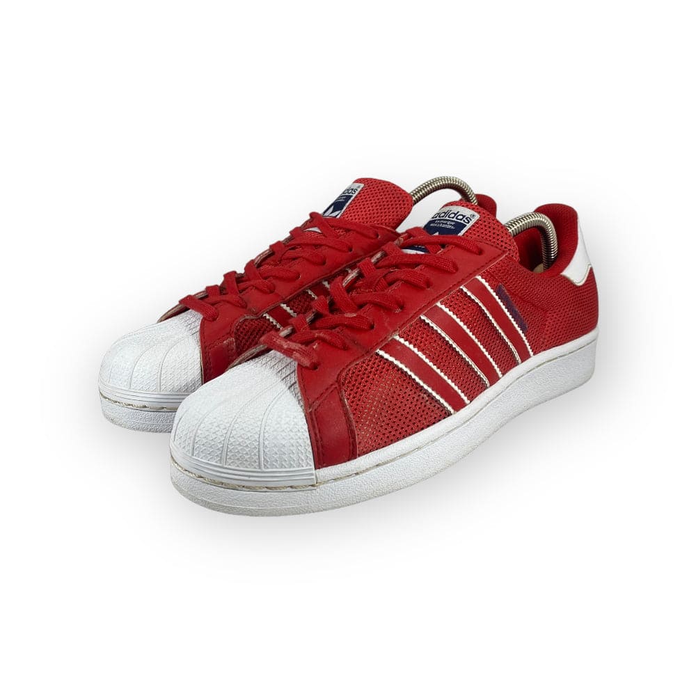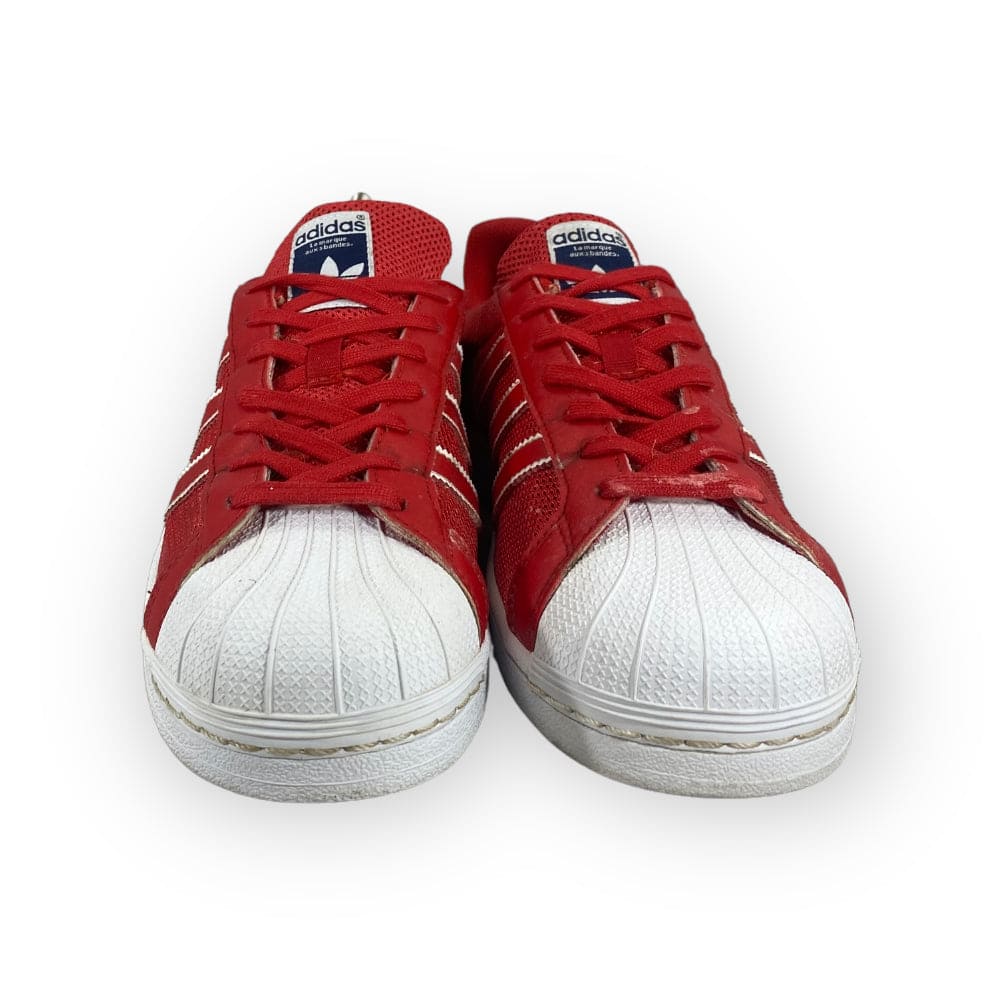 Deze pre-loved Adidas Superstar Red - Maat 42 is volledig schoongemaakt en voorzien van een nieuw WEAR binnenzooltje.