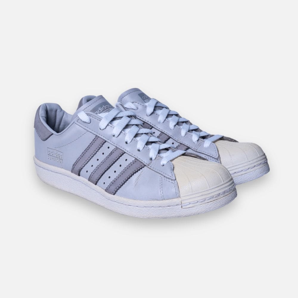 Deze tweedehands adidas Superstar Solid Grey - Maat 41.5 is volledig refurbished. Hij is volledig schoongemaakt en voorzien van een nieuw WEAR binnenzooltje.