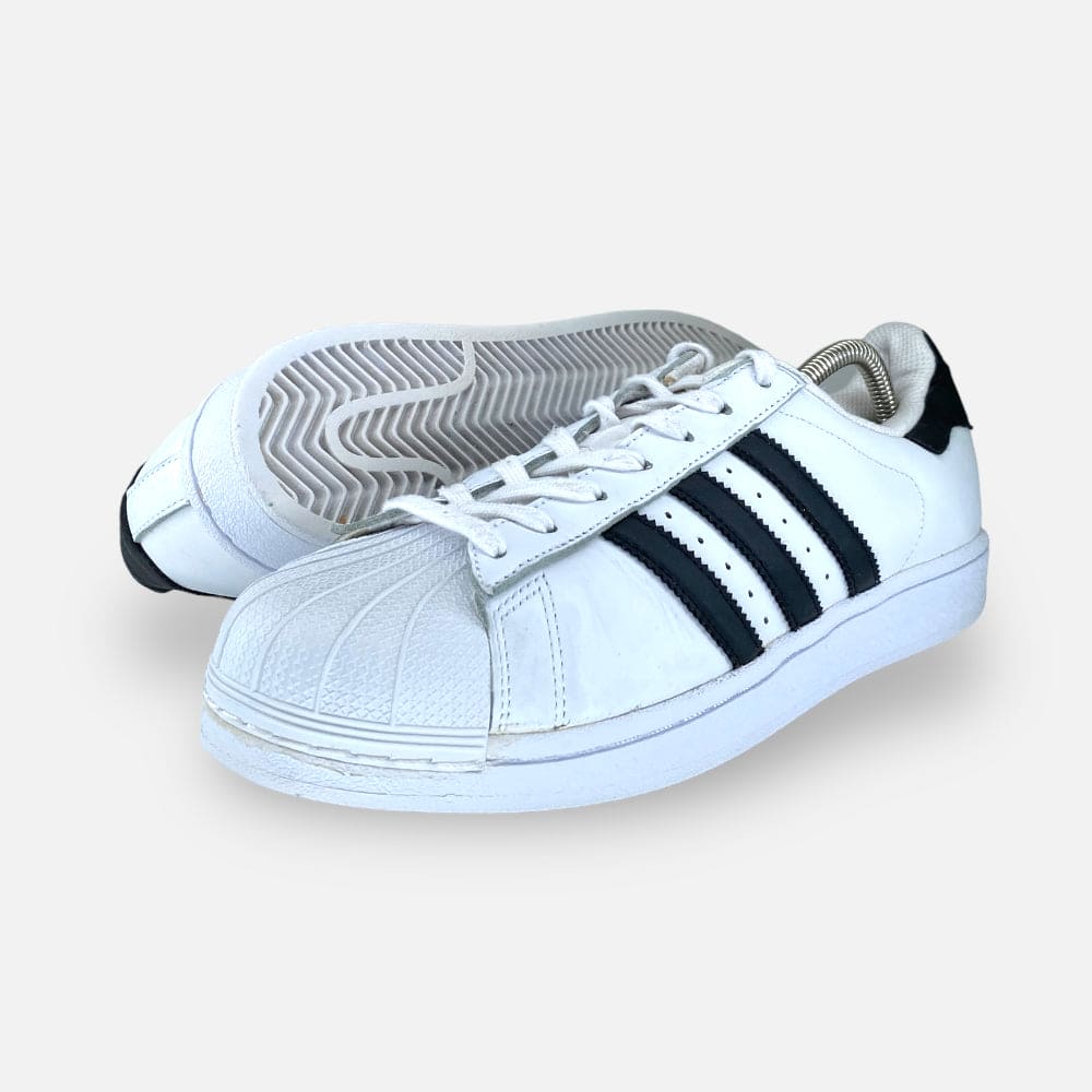 Deze tweedehands adidas Superstar W Ftw White/ Core Black/ Ftw White - Maat 44 is volledig refurbished. Hij is volledig schoongemaakt en voorzien van een nieuw WEAR binnenzooltje.