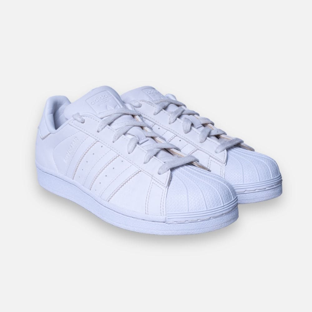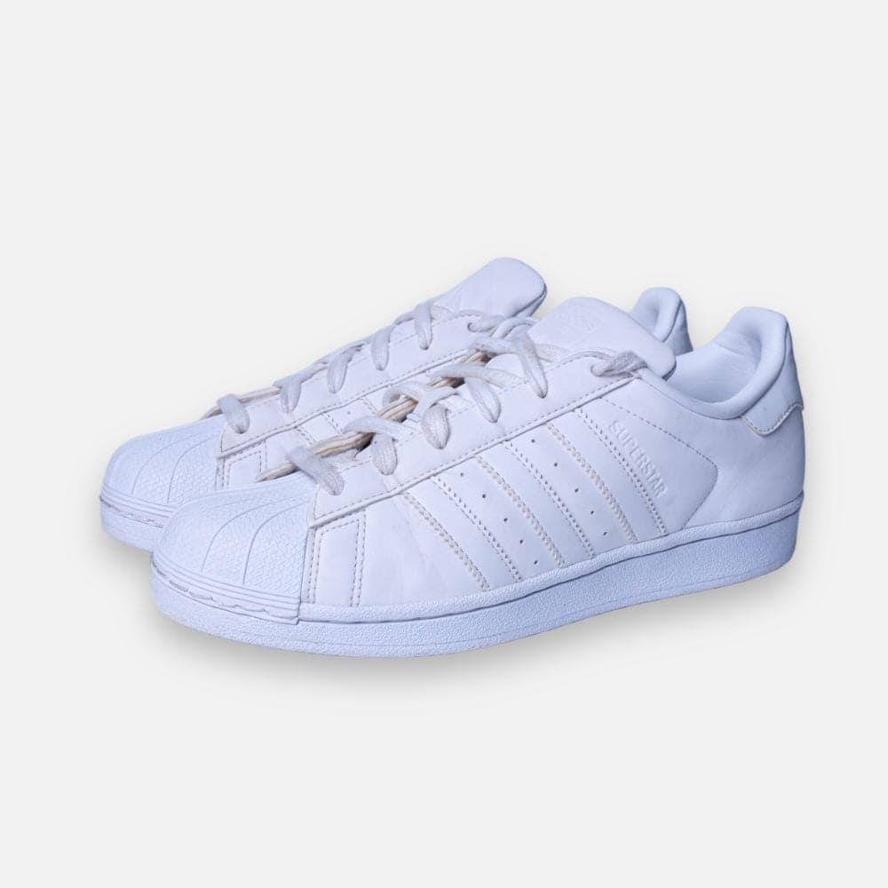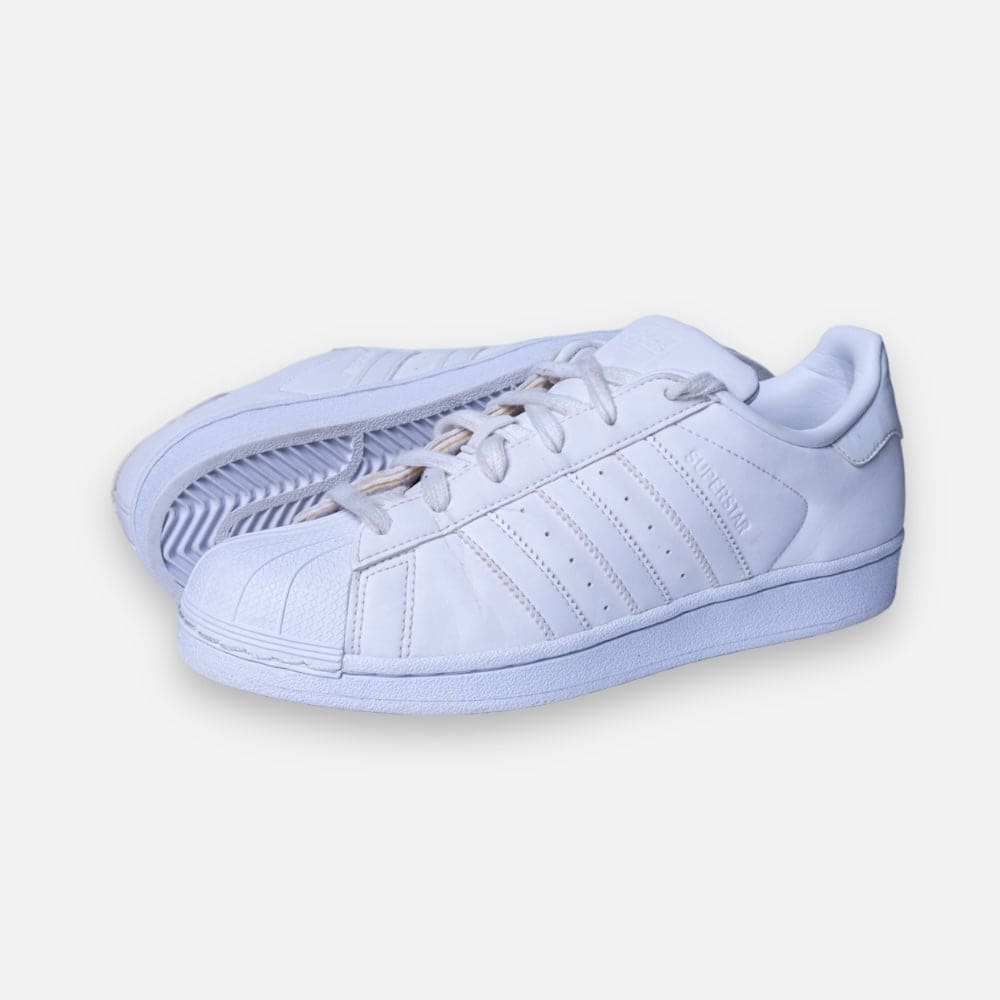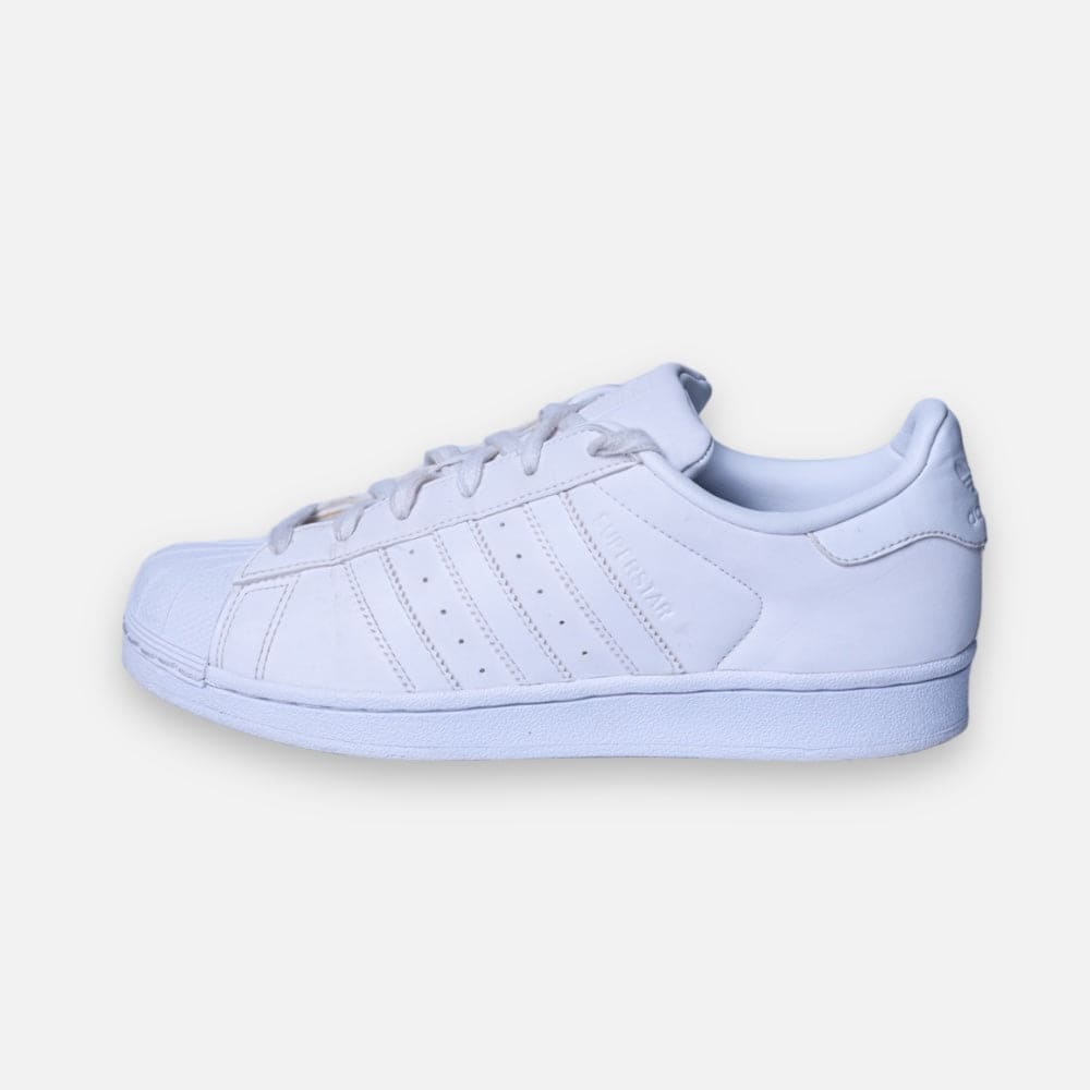 Deze tweedehands Adidas Superstar White - Maat 39.5 is volledig refurbished. Hij is volledig schoongemaakt en voorzien van een nieuw WEAR binnenzooltje.
