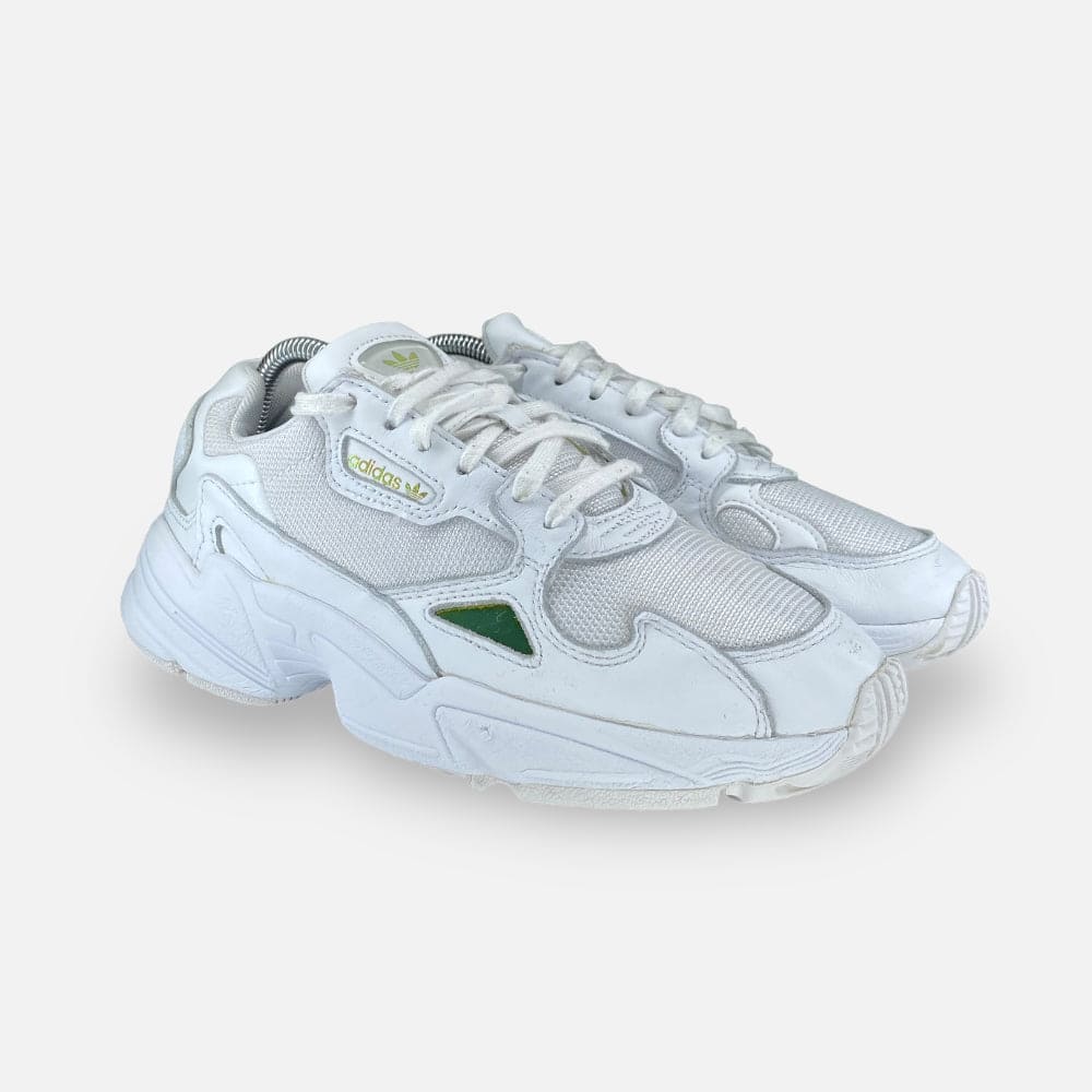 Deze tweedehands adidas WMNS Falcon 'White' - Maat 38 is volledig refurbished. Hij is volledig schoongemaakt en voorzien van een nieuw WEAR binnenzooltje.