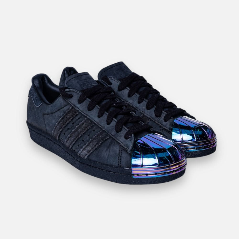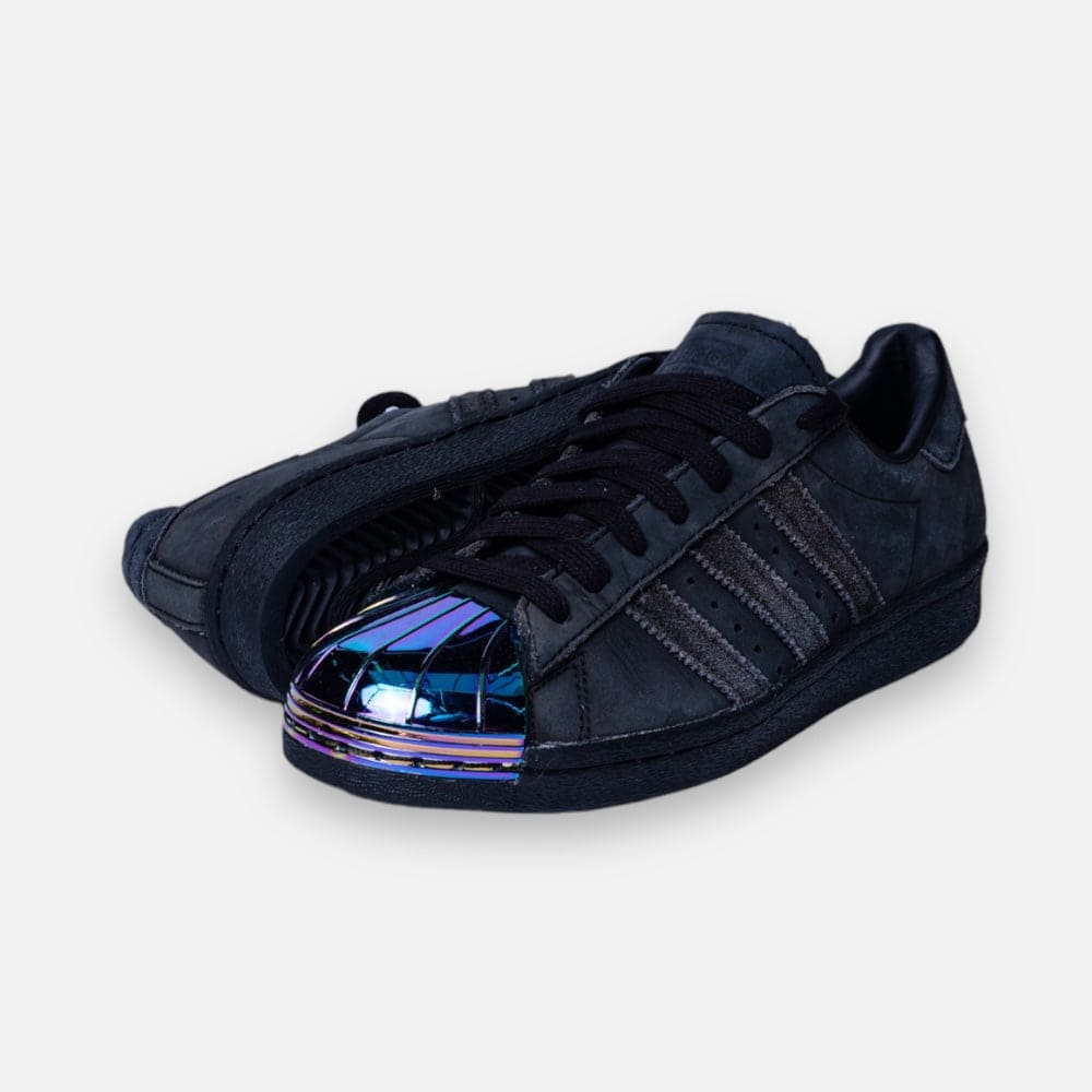 Deze tweedehands adidas Womens WMNS Superstar 80s Metal Toe 'Core Black' Core Black/Core Black/Running White - Maat 39.5 is volledig refurbished. Hij is volledig schoongemaakt en voorzien van een nieuw WEAR binnenzooltje.