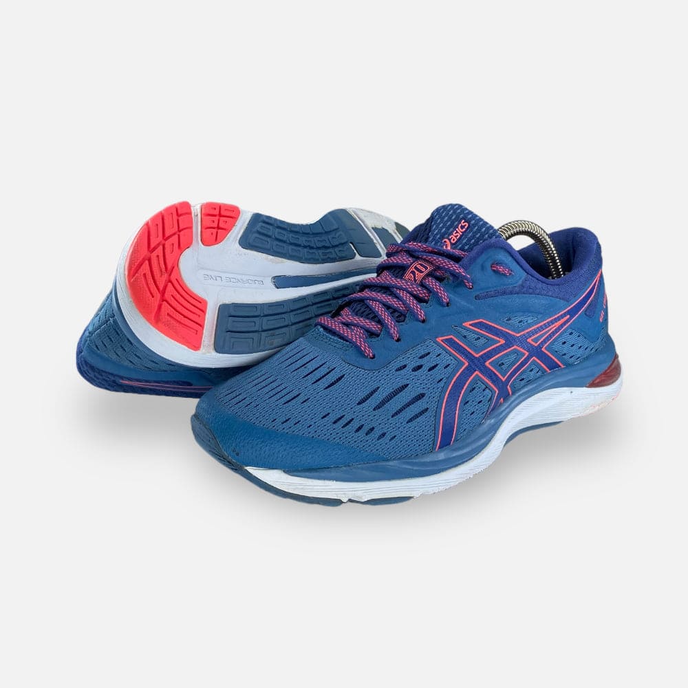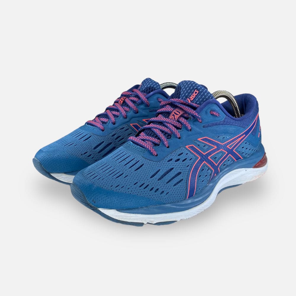 Deze tweedehands Asics Gelcumulus Blue - Maat 39.5 is volledig refurbished. Hij is volledig schoongemaakt en voorzien van een nieuw WEAR binnenzooltje.