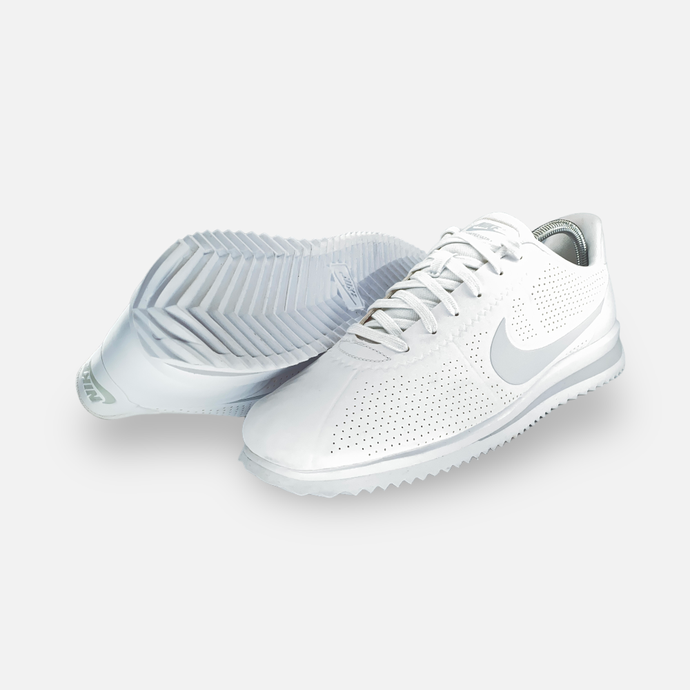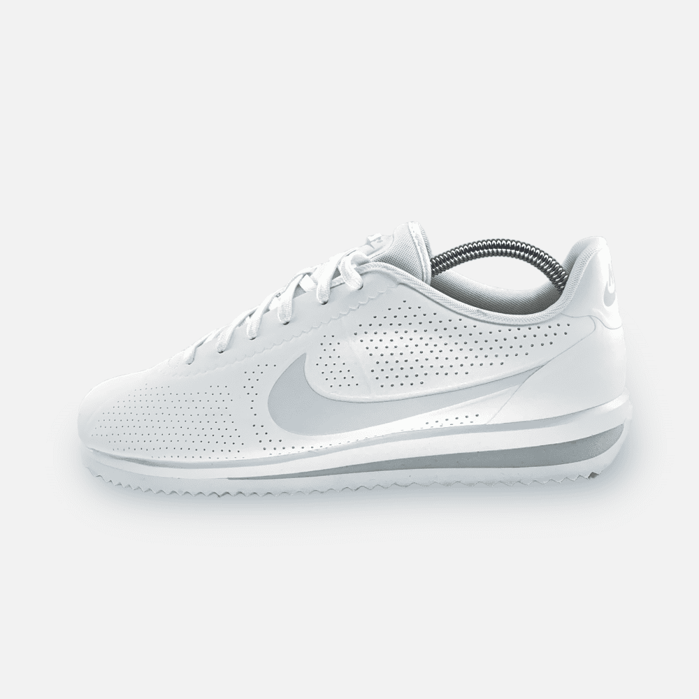 Deze tweedehands NIKE CORTEZ ULTRA MOIRE WIT - Maat 44 is volledig refurbished. Hij is volledig schoongemaakt en voorzien van een nieuw WEAR binnenzooltje.