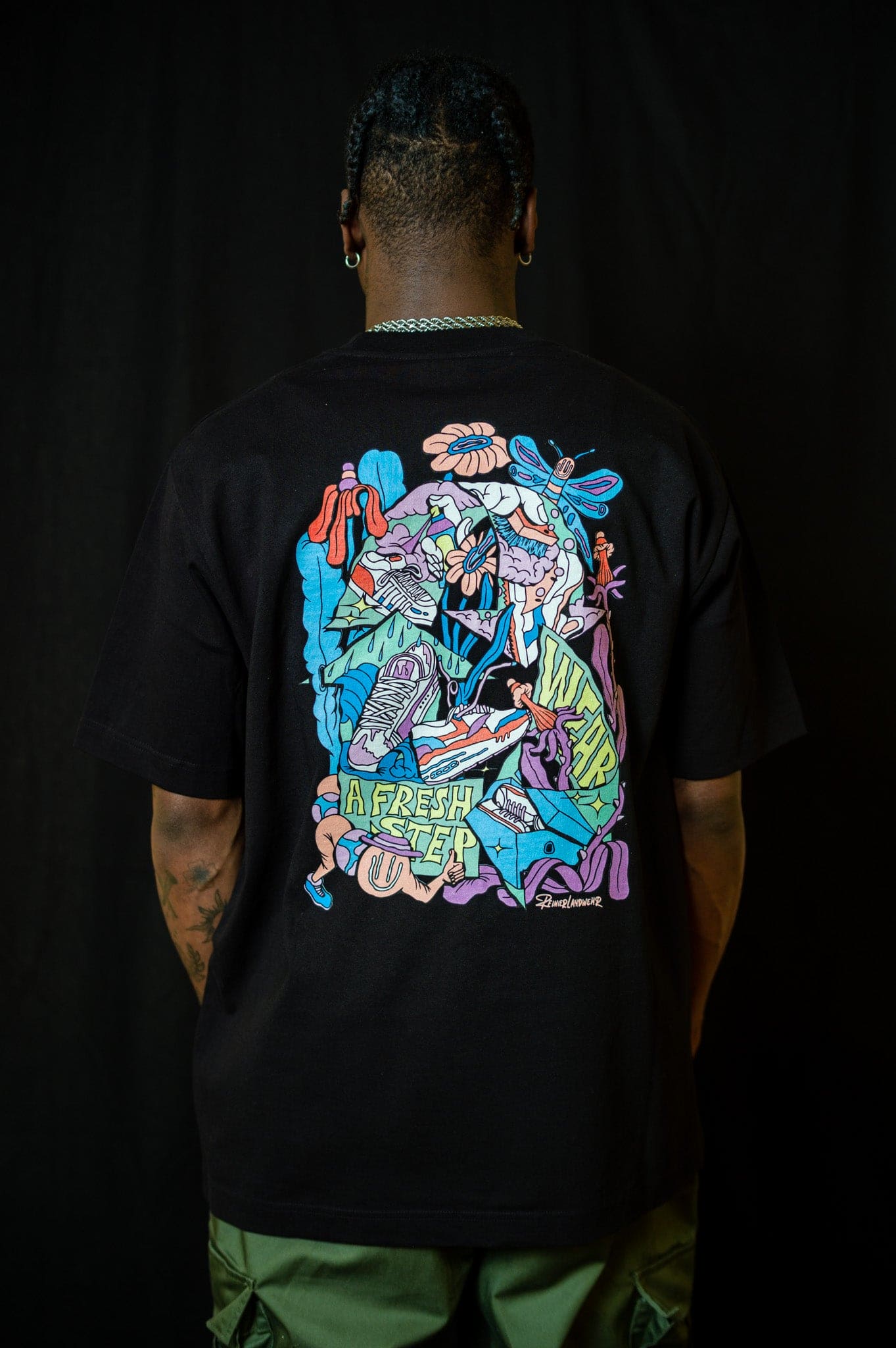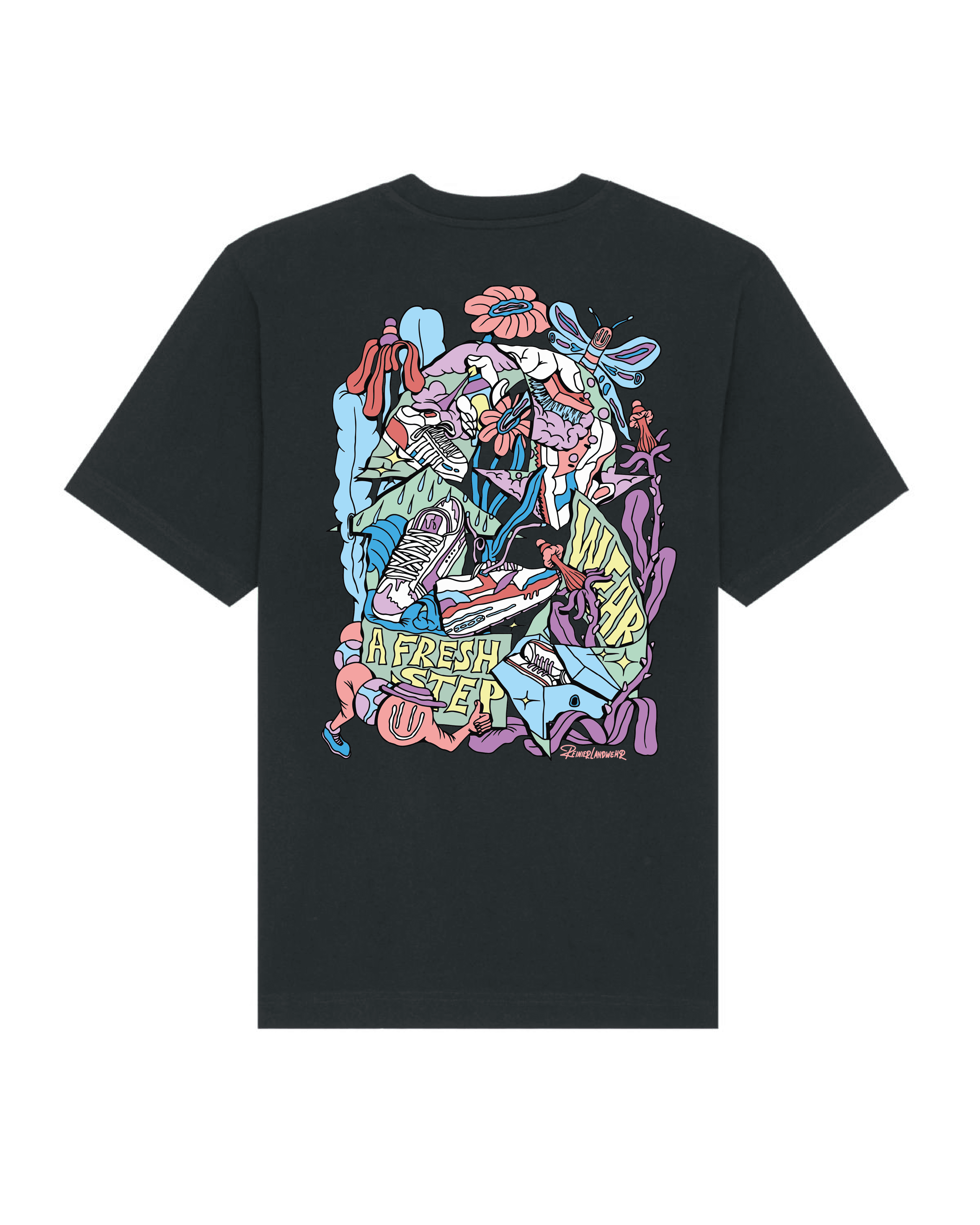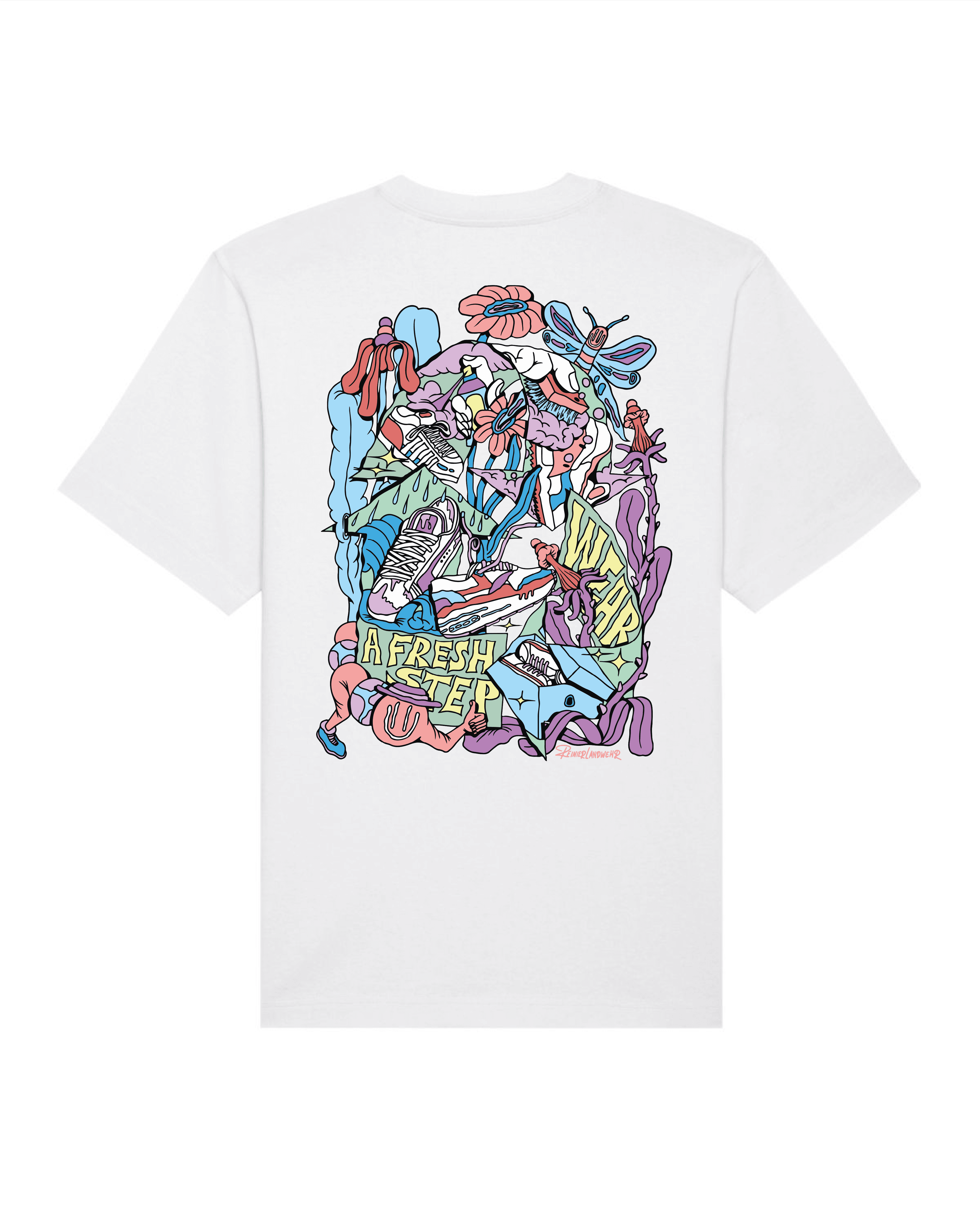 Get ready for summer with this extra heavy oversized premium T-shirt featuring an artwork made by Reinier Landwehr. It has a ribbed crew neck, dropped short sleeves that fall just above the elbows, and straight double-stitched hems.