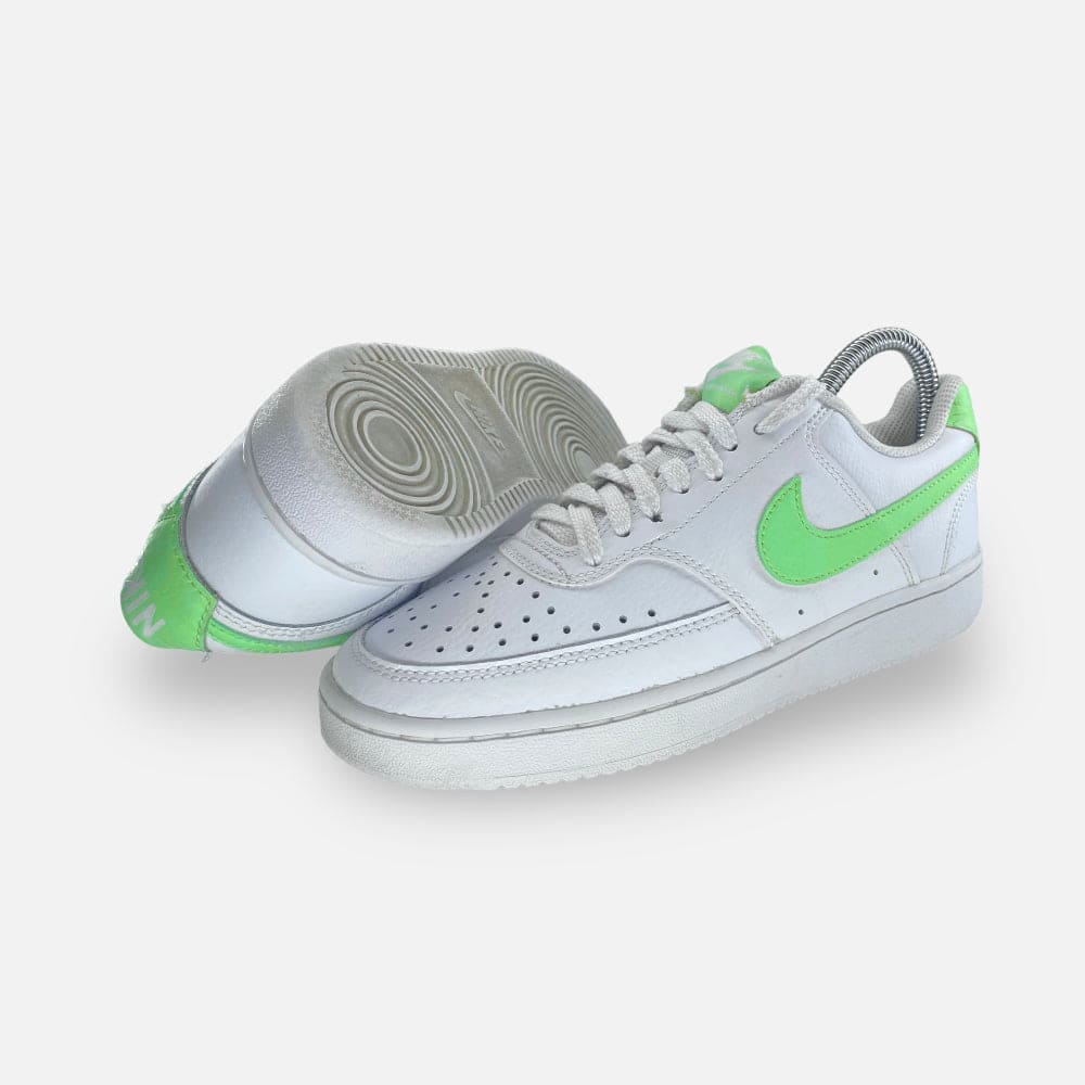 Deze Womens Nike Court Vision Low 'White Light Zitron' White/Light Zitron/Bright Mango WMNS - Maat 36.5 is volledig refurbished. Hij is van binnen en van buiten schoongemaakt én voorzien van een nieuw WEAR binnenzooltje. Helemaal fresh en klaar voor een tweede leven!